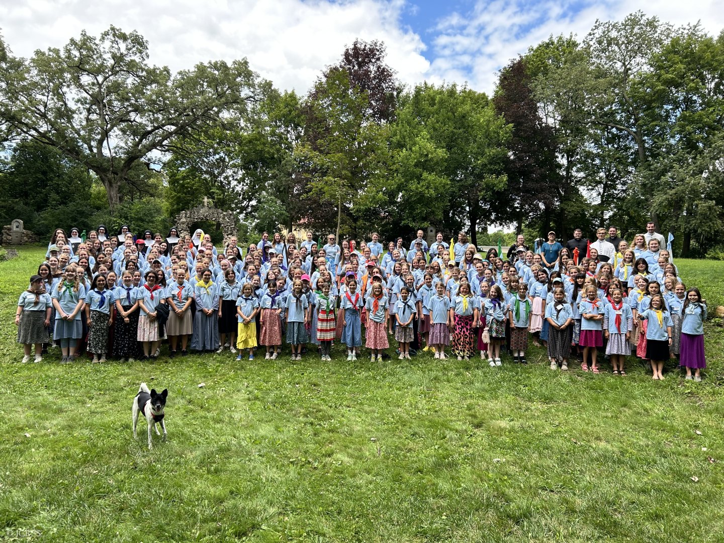 Błogosławieństwo prymicyjne — obóz dla dziewczynek Sługi Bożej Anny de Guigné w konwencie Sióstr Adoratorek w Loisy pod Paryżem