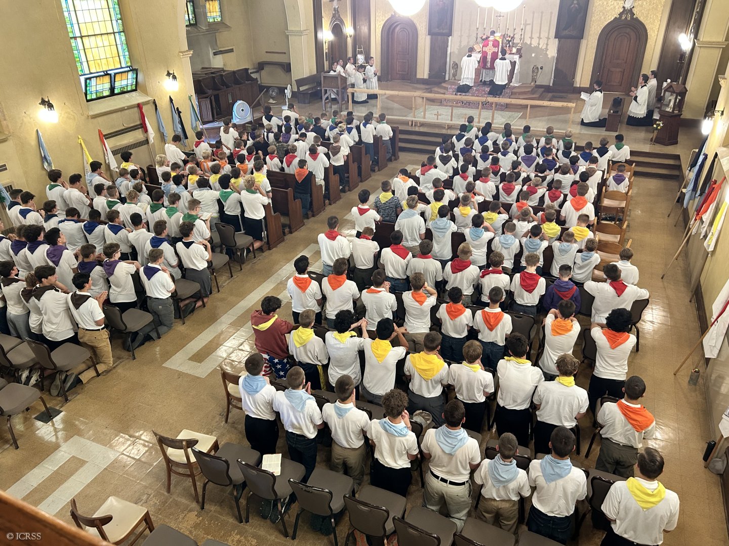 Msza Święta — obóz św. Michała dla chłopców w Burlington, stan Wisconsin na północy Stanów Zjednoczonych Ameryki