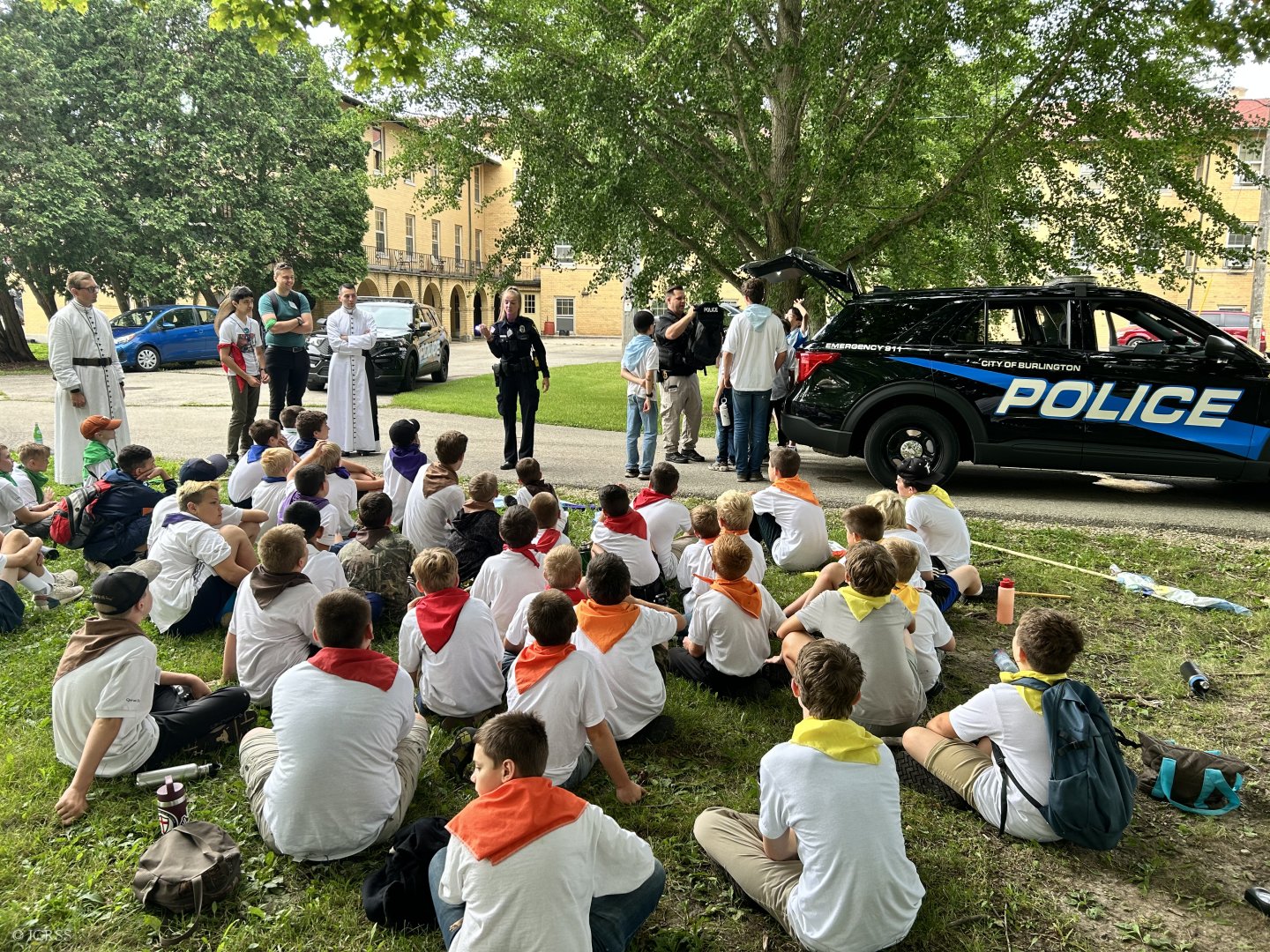 Spotkanie z policjantami i strażakami — obóz św. Michała dla chłopców w Burlington, stan Wisconsin na północy Stanów Zjednoczonych Ameryki