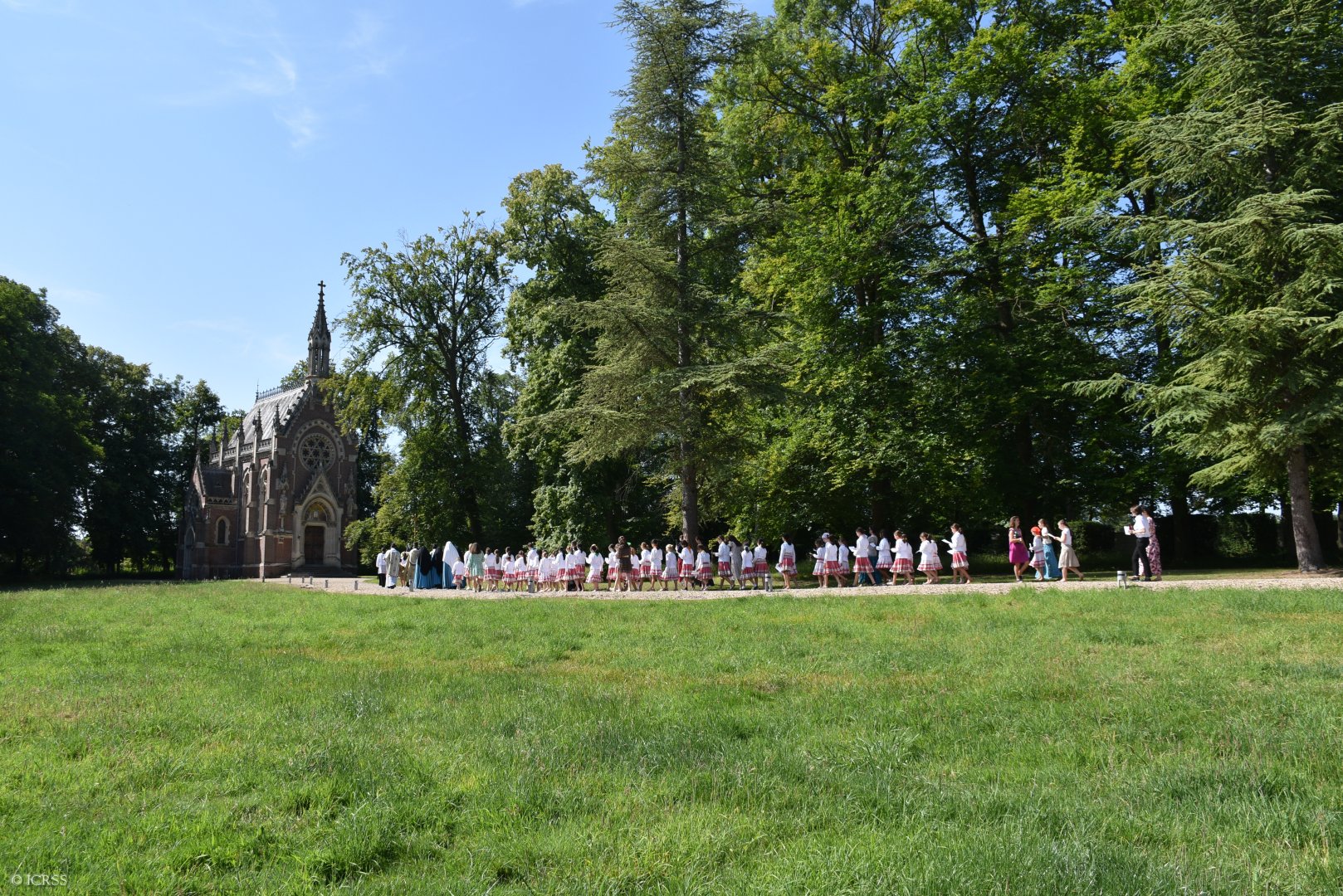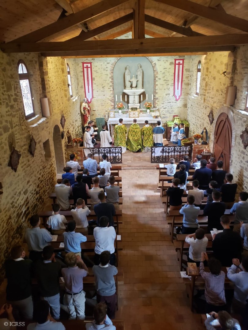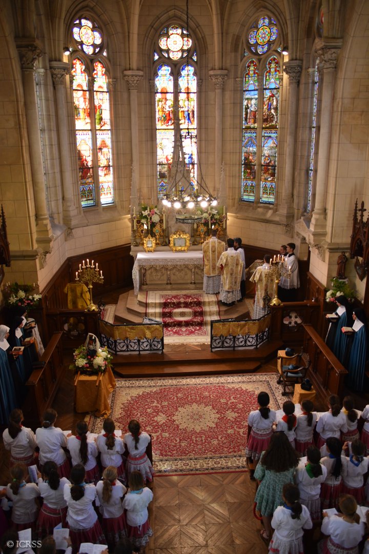 Uroczysta Msza Święta — obóz dla dziewczynek Sługi Bożej Anny de Guigné w konwencie Sióstr Adoratorek w Loisy pod Paryżem
