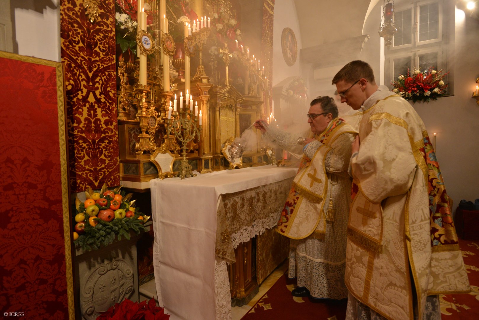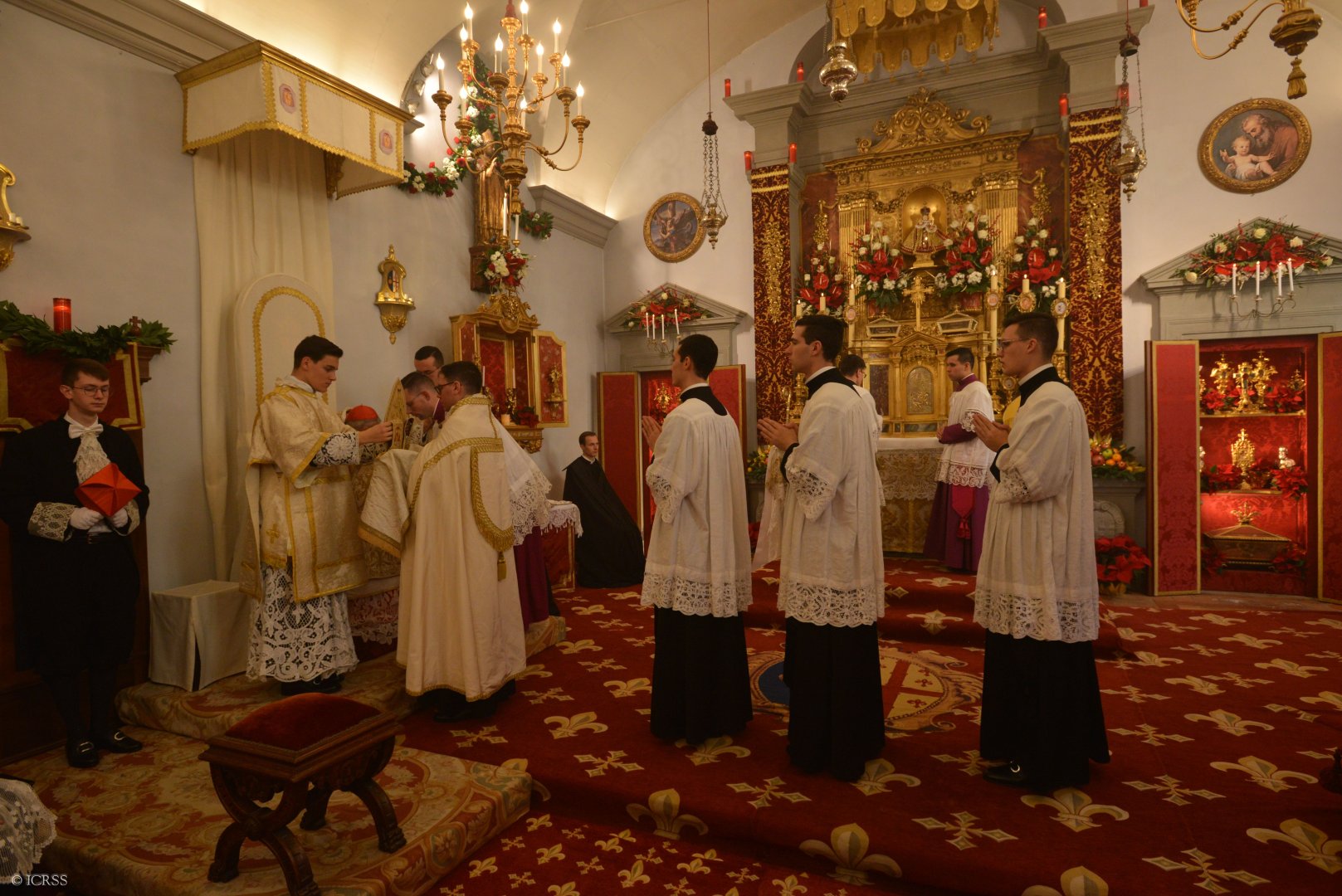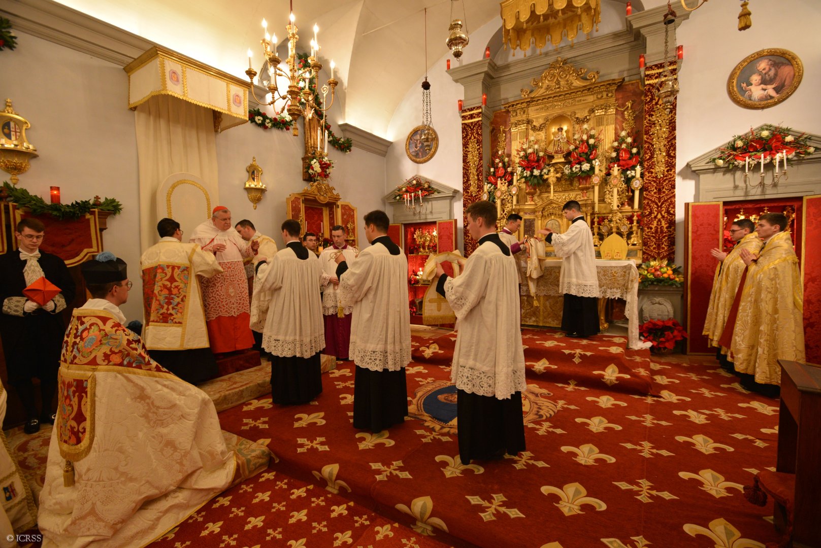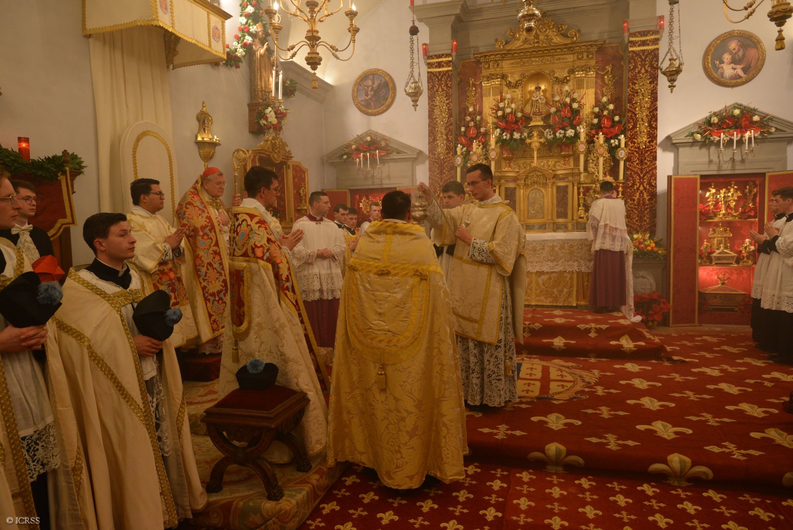 Trzecią Mszę Świętą (w dzień) Bożego Narodzenia uroczyście odprawił od tronu Jego Eminencja Ksiądz Rajmund Leon Kardynał Burke, który już od wielu lat spędza święta w Gricigliano.