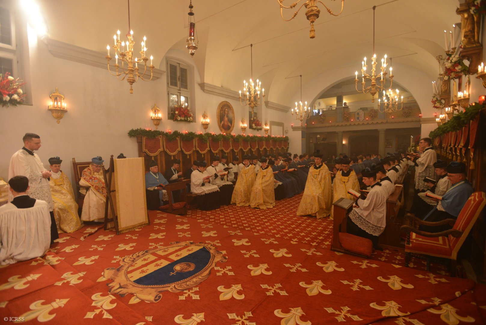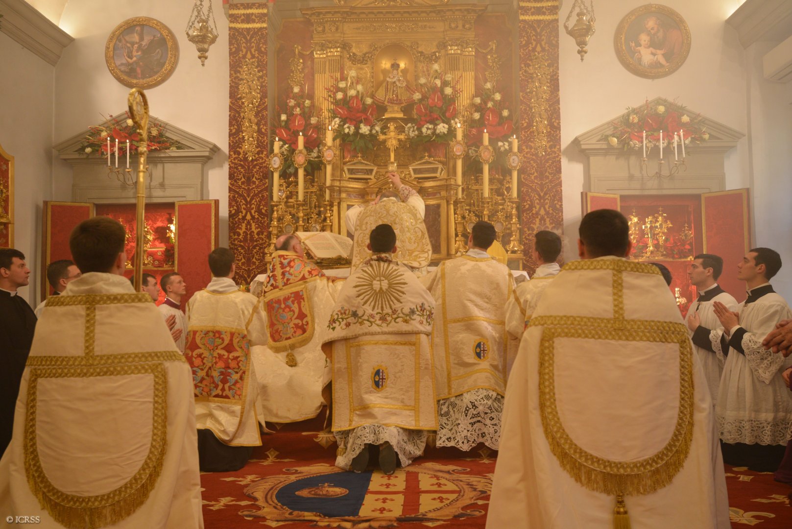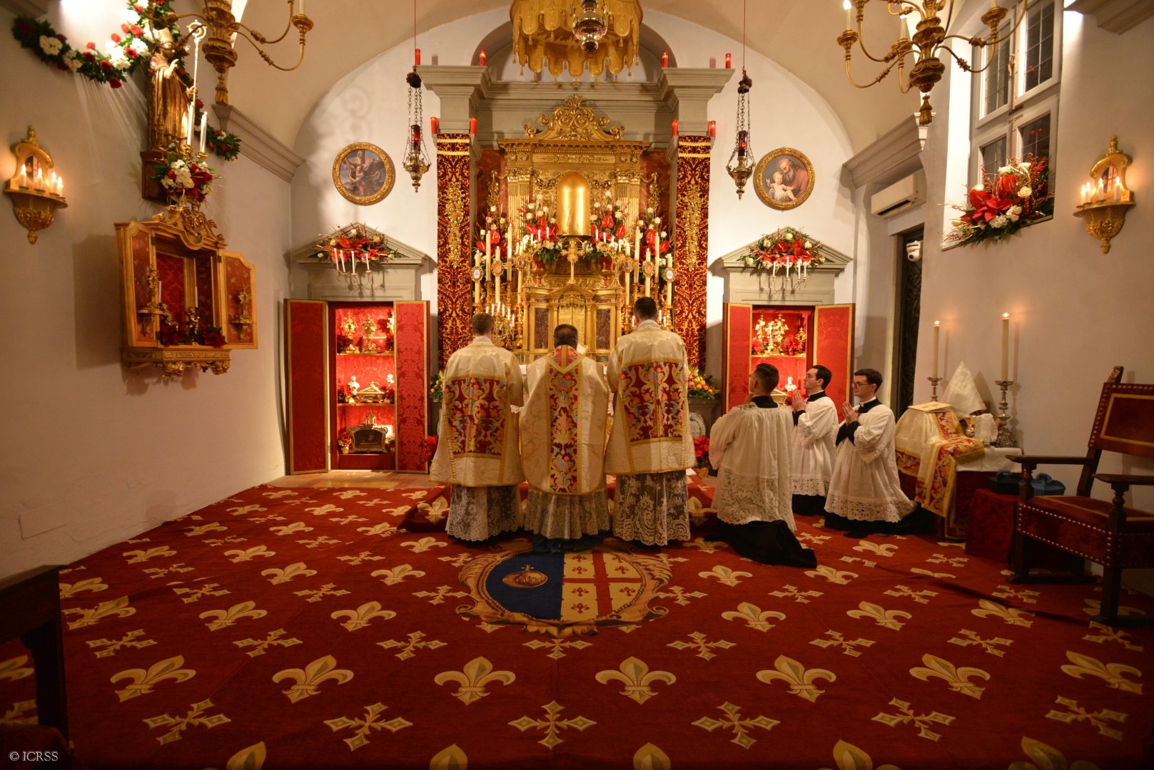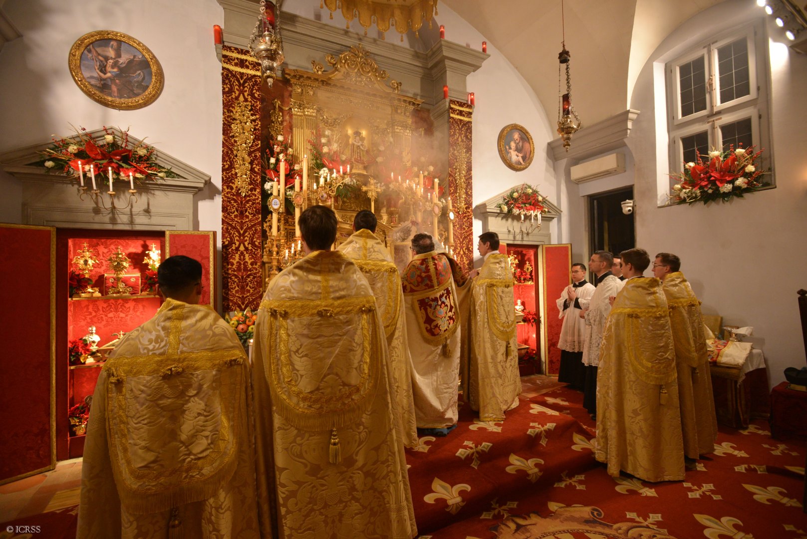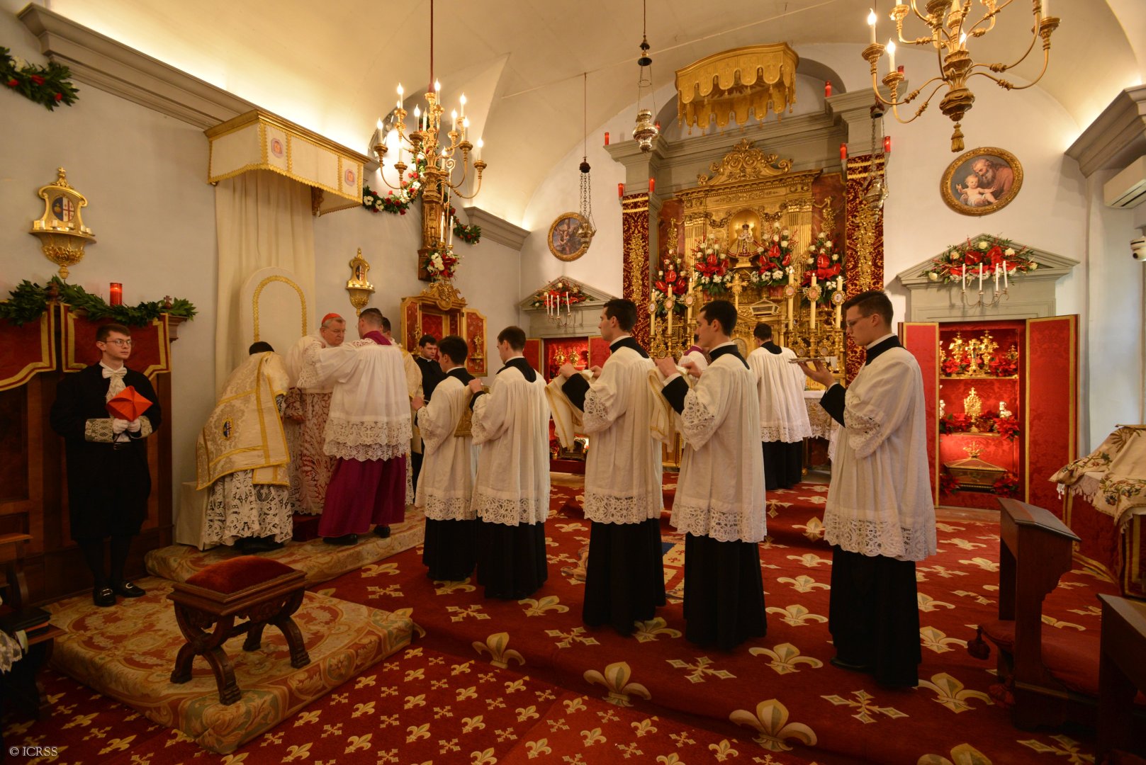 Trzecią Mszę Świętą (w dzień) Bożego Narodzenia uroczyście odprawił od tronu Jego Eminencja Ksiądz Rajmund Leon Kardynał Burke, który już od wielu lat spędza święta w Gricigliano.