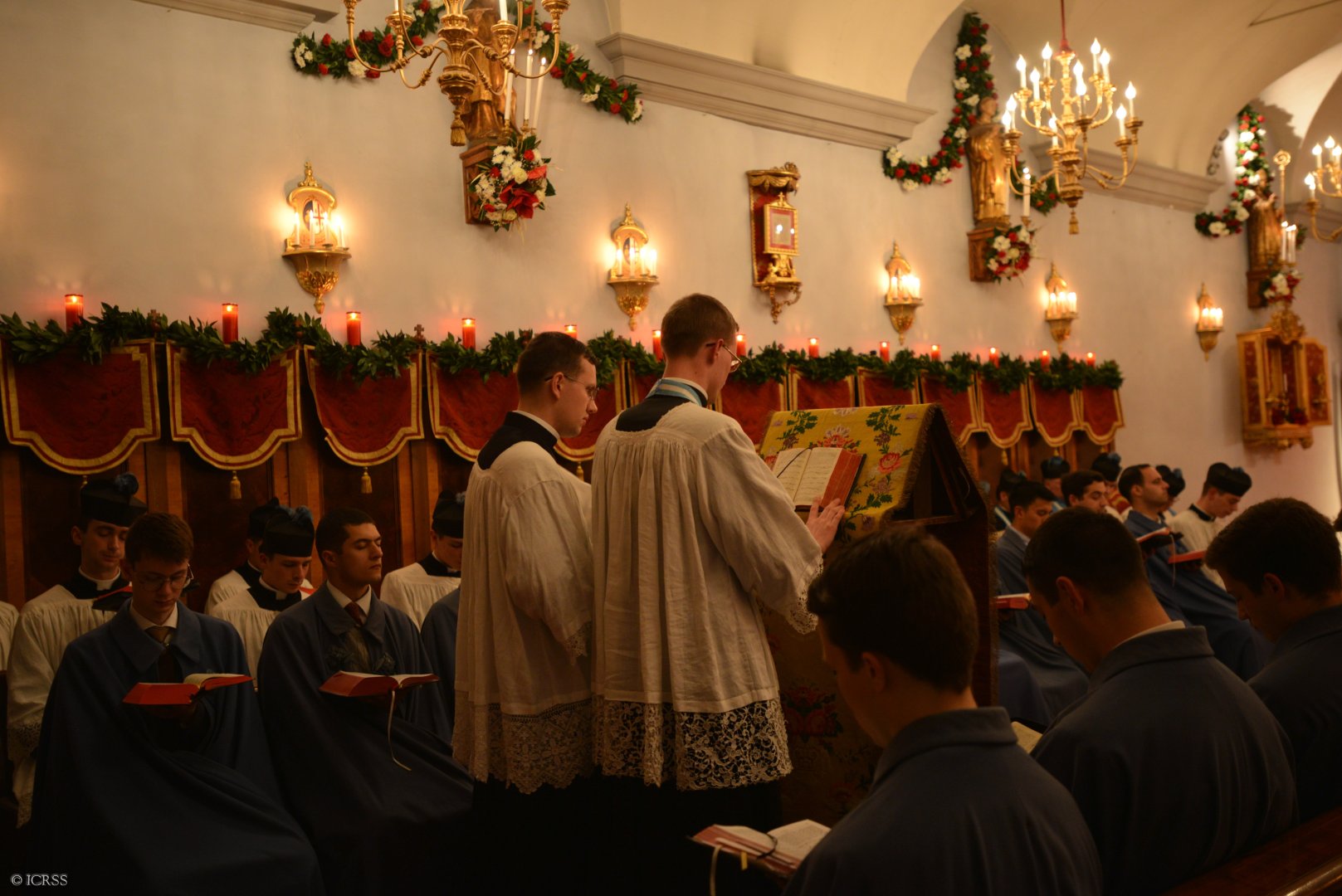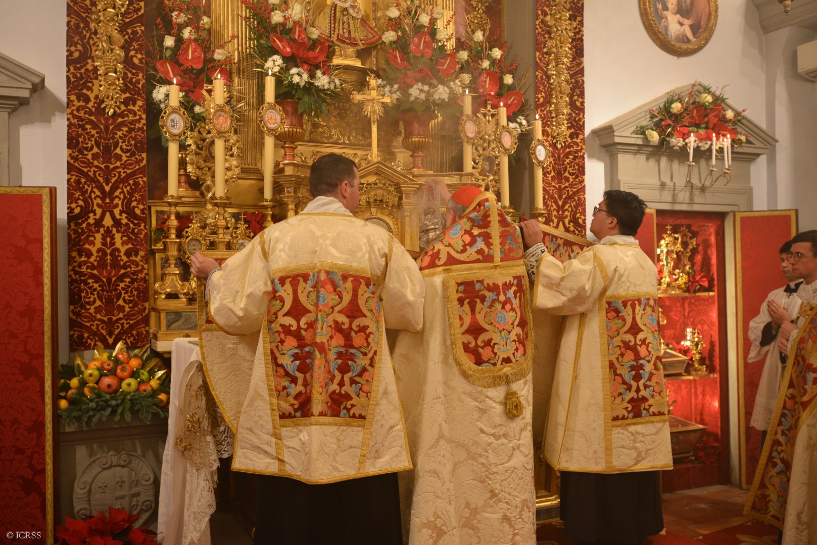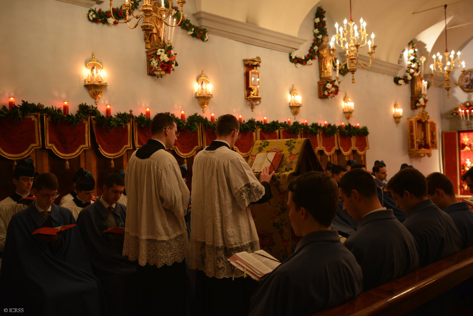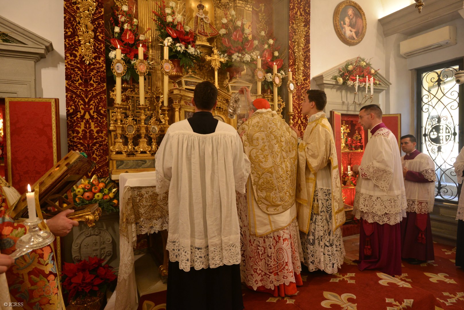 Trzecią Mszę Świętą (w dzień) Bożego Narodzenia uroczyście odprawił od tronu Jego Eminencja Ksiądz Rajmund Leon Kardynał Burke, który już od wielu lat spędza święta w Gricigliano.