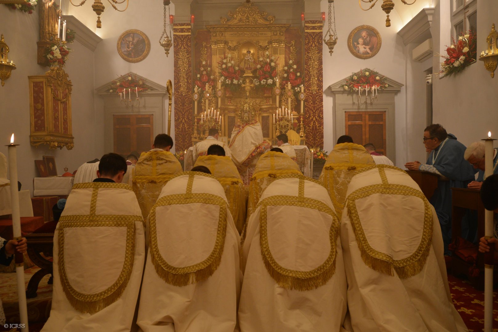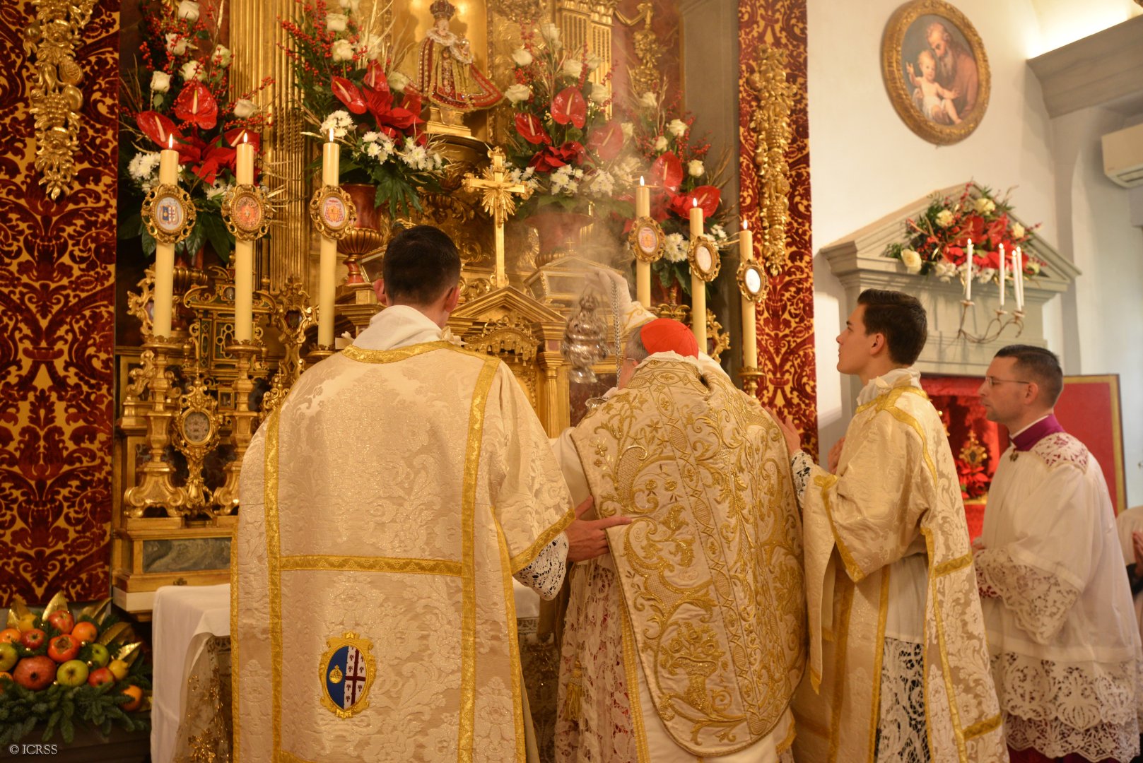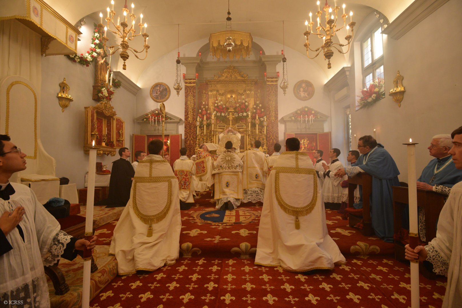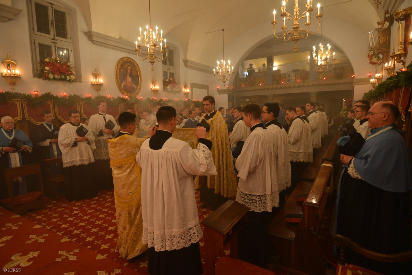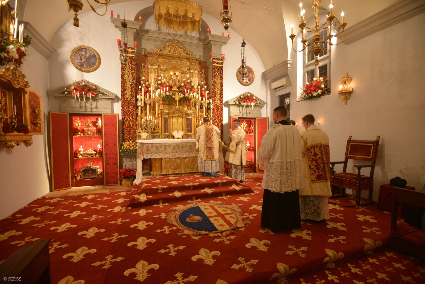 Trzecią Mszę Świętą (w dzień) Bożego Narodzenia uroczyście odprawił od tronu Jego Eminencja Ksiądz Rajmund Leon Kardynał Burke, który już od wielu lat spędza święta w Gricigliano.