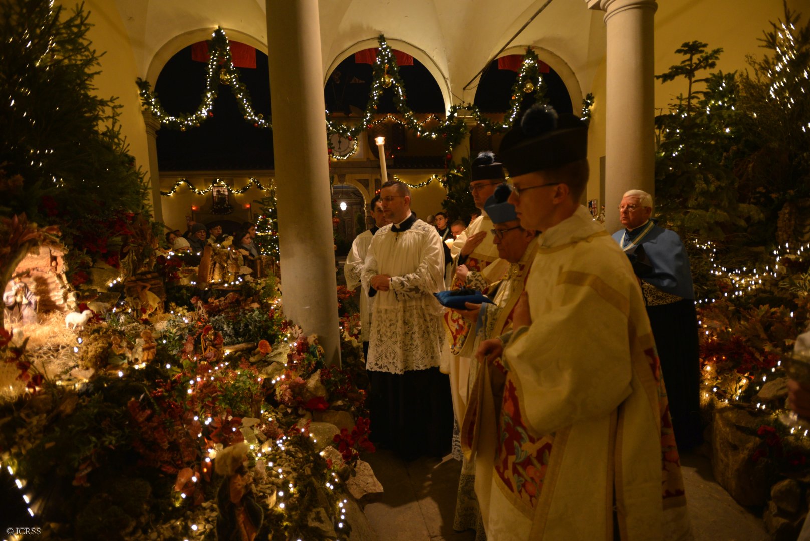 Przełożony Generalny umieszcza figurkę Dzieciątka Jezus w żłóbku