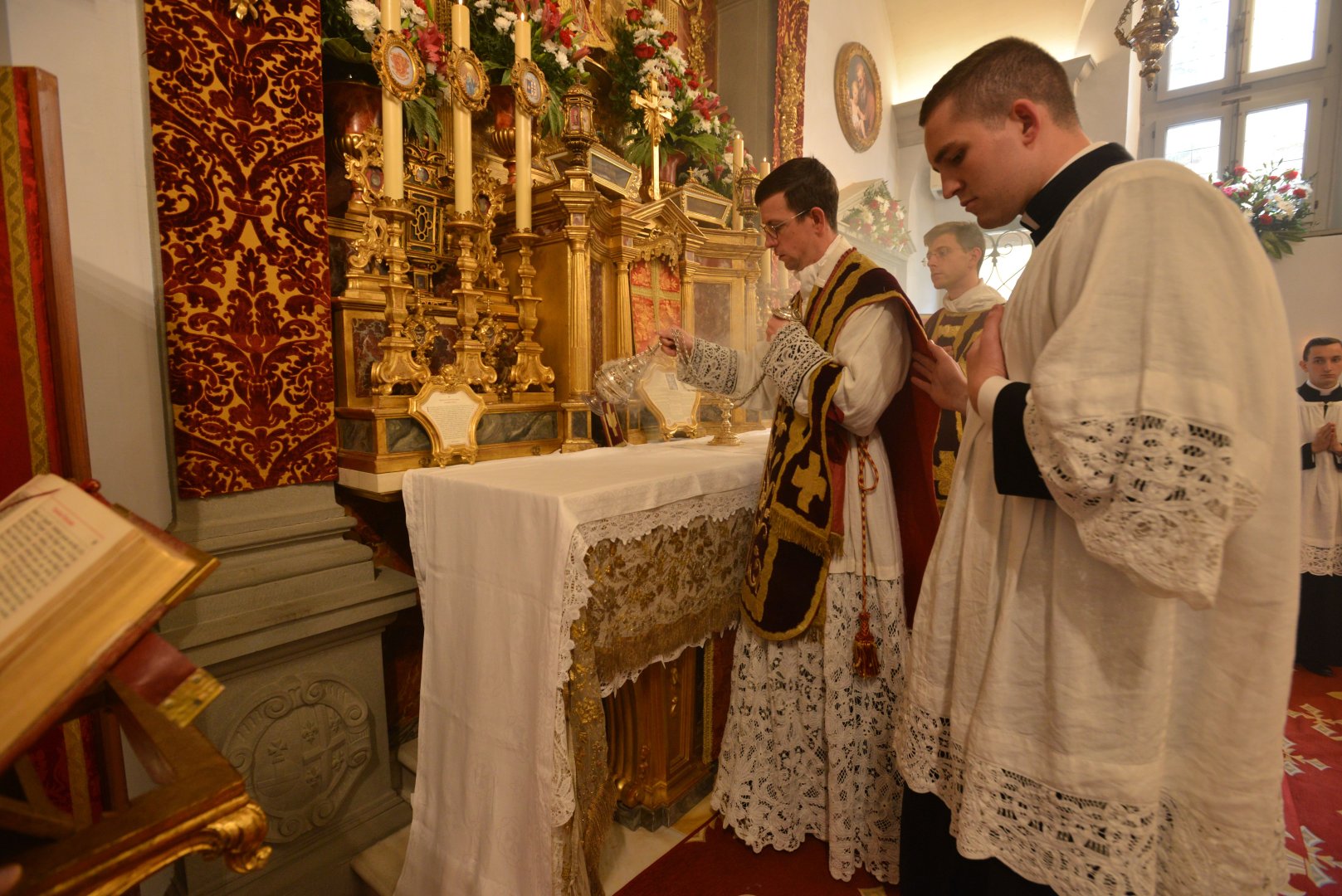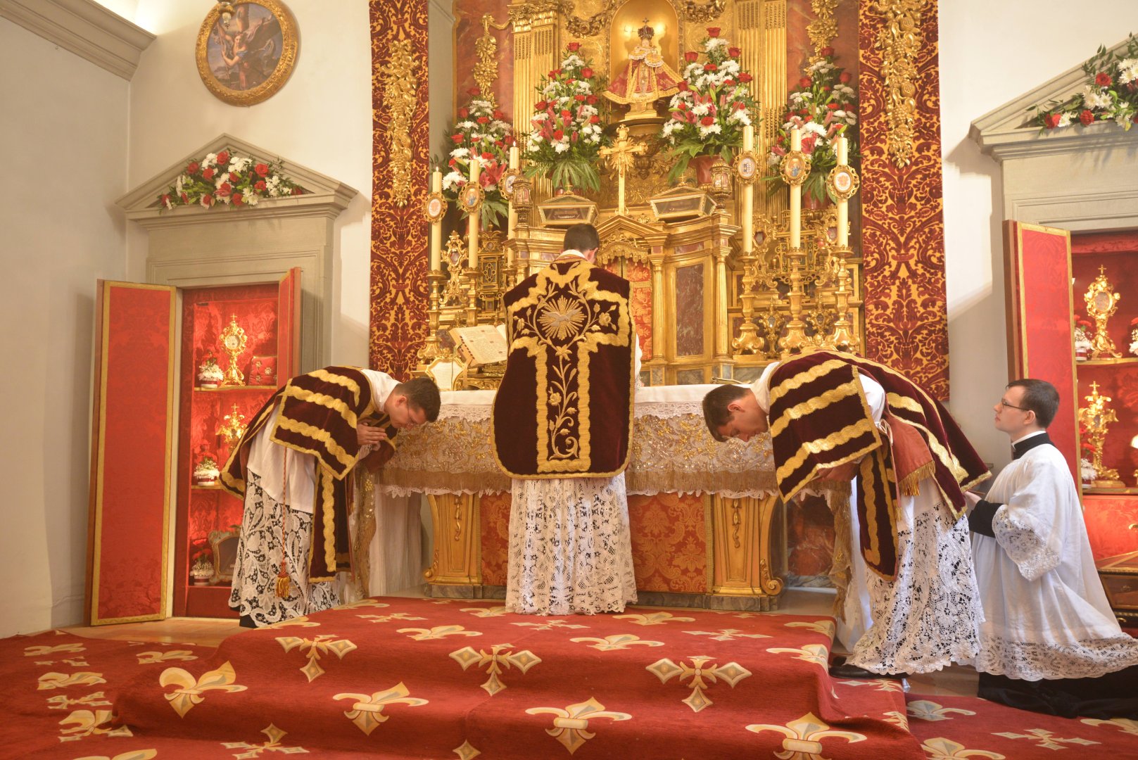 Oficjant wraz z asystentami oddają cześć ołtarzowi