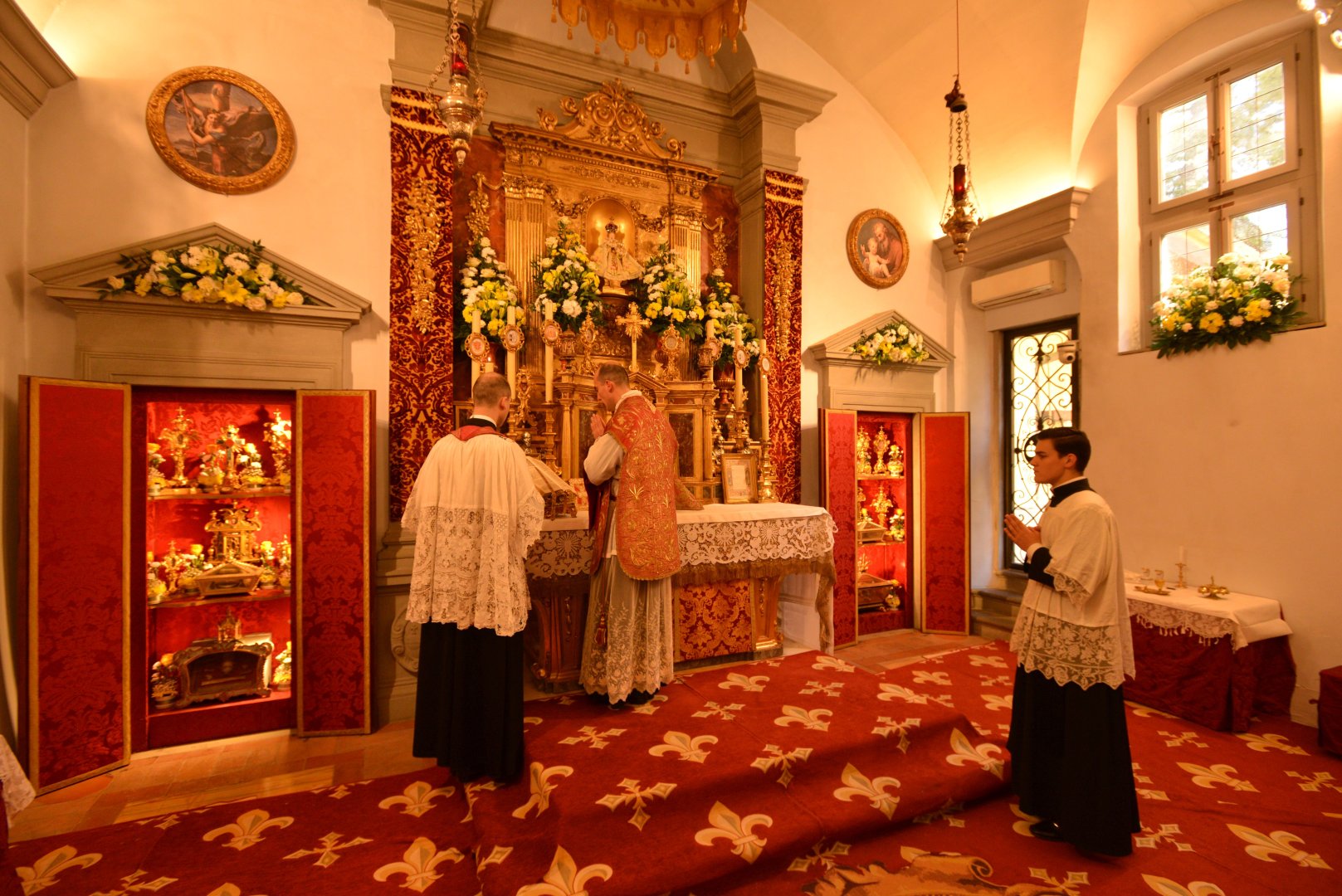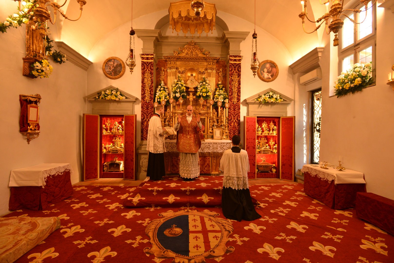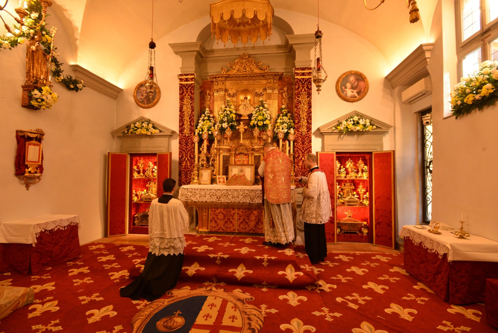 Pozdrowienie ołtarza — kardynał modli się chwilę w ciszy po wejściu do kaplicy