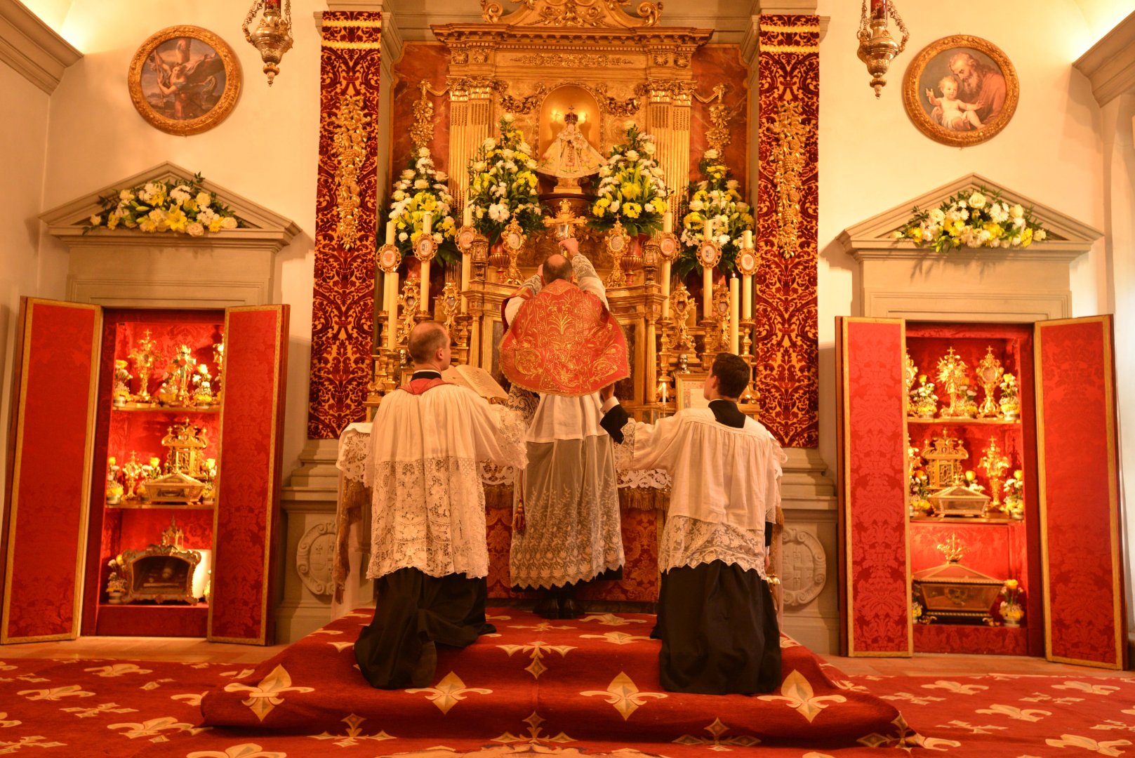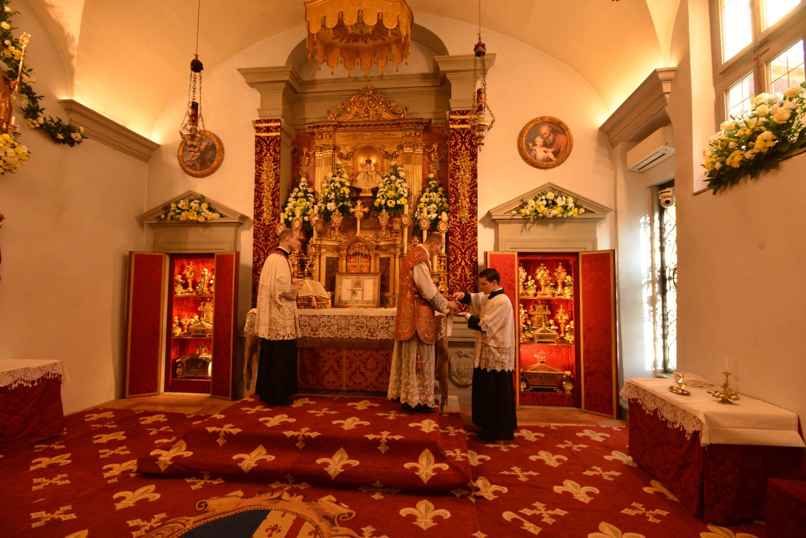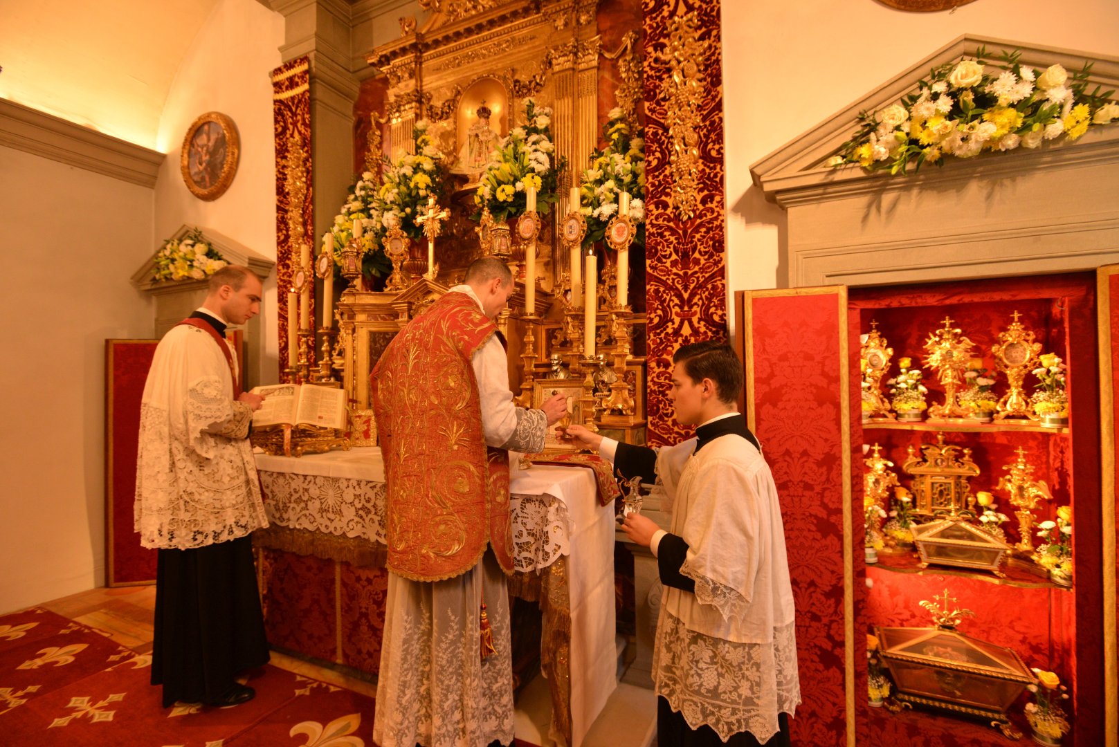 Pozdrowienie ołtarza — kardynał modli się chwilę w ciszy po wejściu do kaplicy