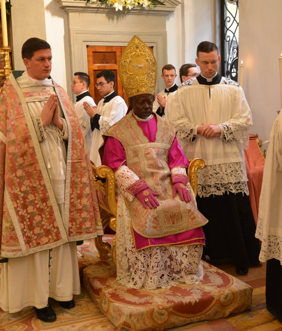 Mszę Świętą pontyfikalną od faldystorium odprawił Ksiądz Biskup Matthieu Madega, biskup diecezji Mouila.