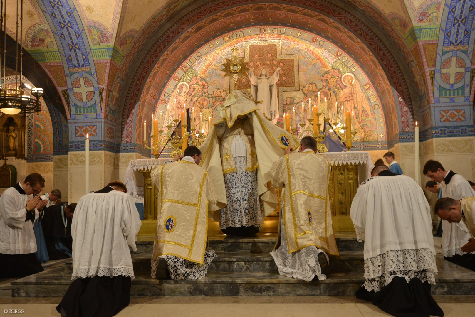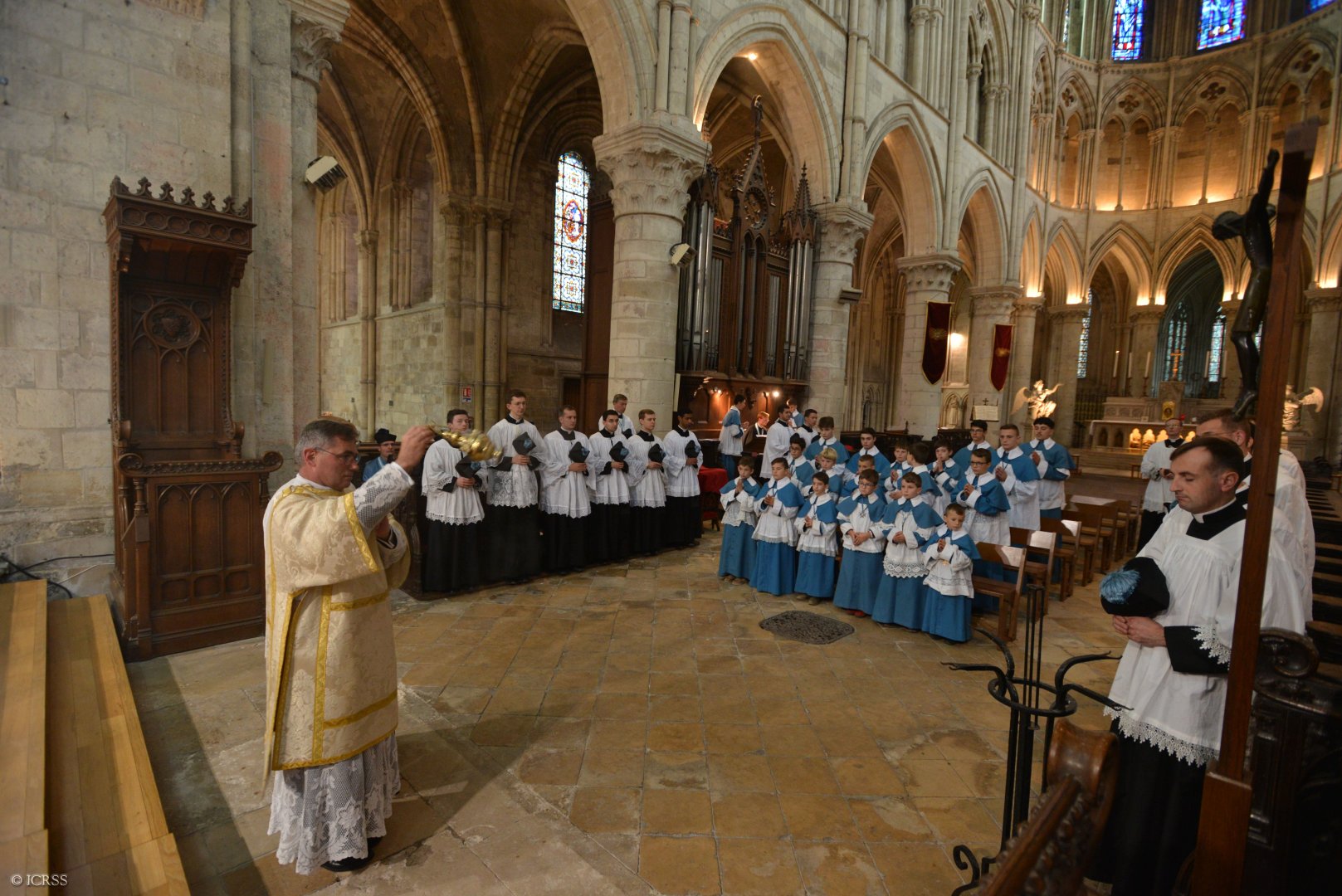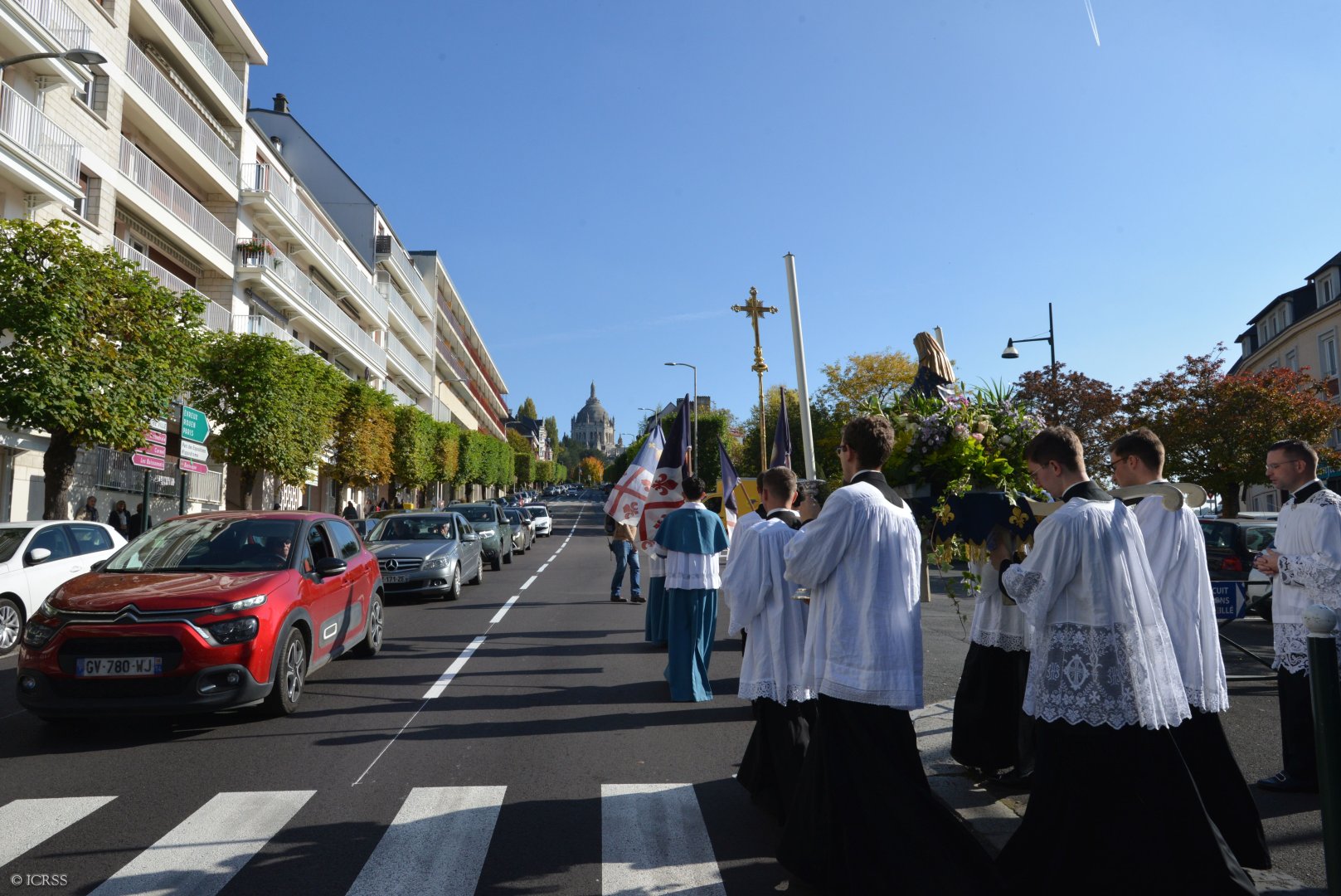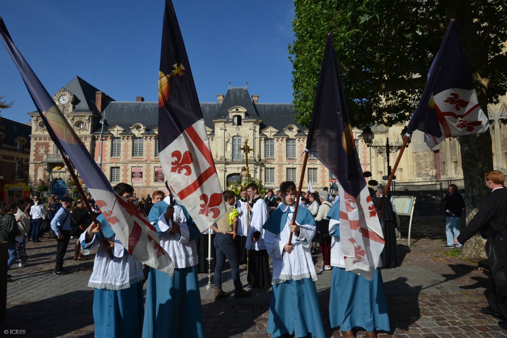 W ramach pielgrzymki Ksiądz Prałat Gilles Wach, Przełożony Generalny, odprawił uroczystą Mszę Świętą w katedrze w Lisieux i wygłosił kazanie. Po liturgii pielgrzymi wyruszyli w procesji od katedry, przez Lisieux, aż do krypty bazyliki św. Teresy od Dzieciątka Jezus, gdzie odbyła się adoracja Najświętszego Sakramentu.