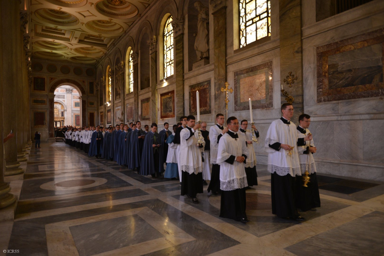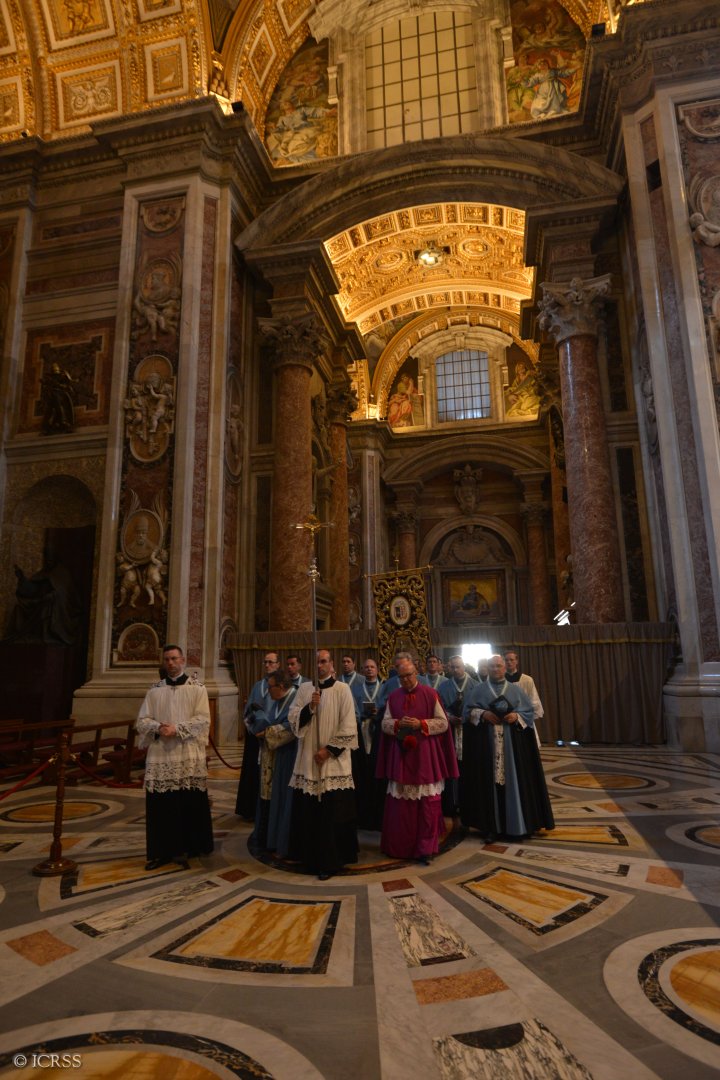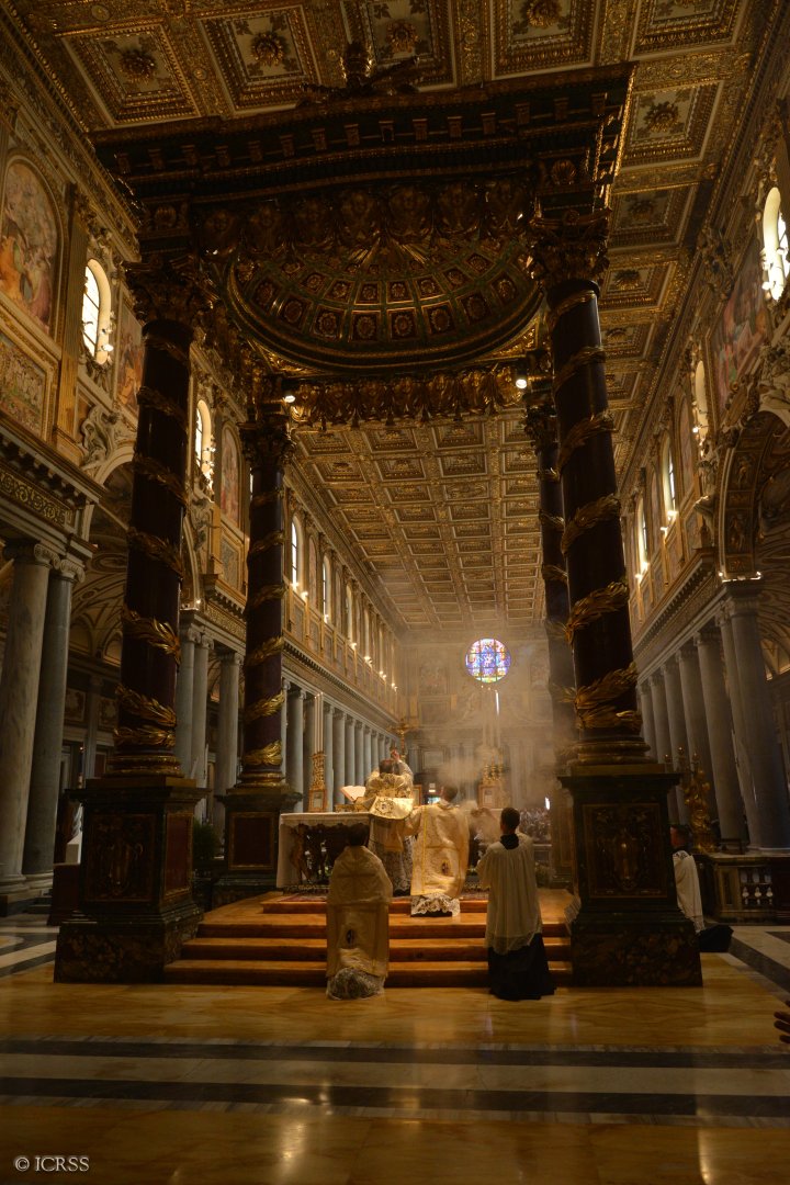 Uroczystą Mszę Świętą otwierającą pielgrzymkę Instytutu odprawił Ksiądz Prałat Gilles Wach, Założyciel i Przełożony Generalny Instytutu, w Bazylice Matki Bożej Większej. Na Mszy obecny był również Jego Eminencja Ksiądz Ernest Kardynał Simoni.