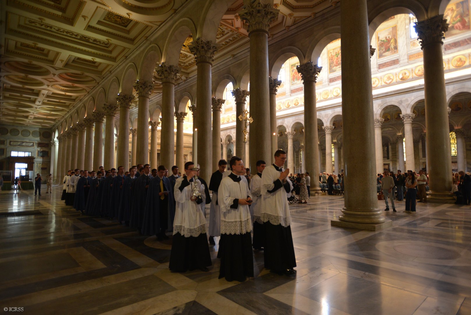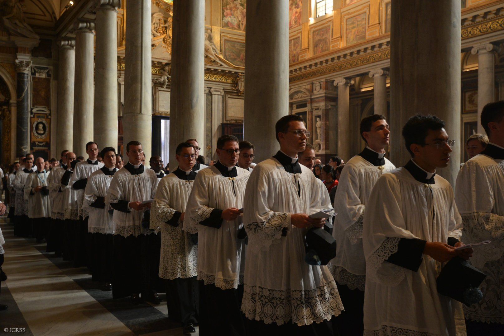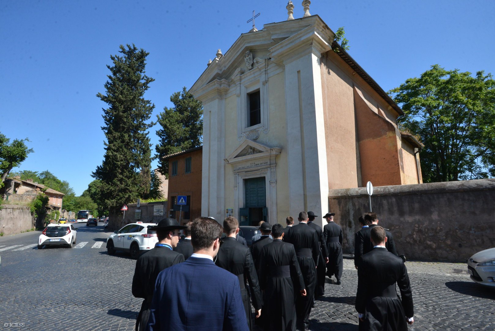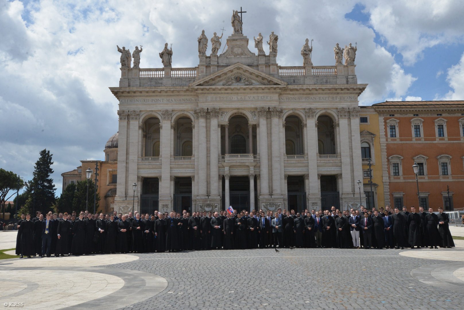 Księża Kanonicy oraz klerycy przed Bazyliką św. Jana na Lateranie