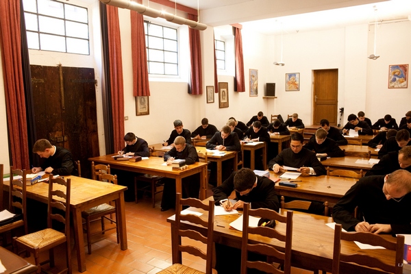 Seminaryjne życie upływa w rytmie liturgii i studiów... ale także, dwa razy w roku, egzaminów! Tydzień je poprzedzający jest szczególnie poświęcony nauce i powtórkom, z odpowiednio ułożonym planem zajęć. W zależności od liczby lat spędzonych w seminarium, klerycy studiują dzieła filozoficzne Arystotelesa i św. Tomasza albo traktaty teologiczne, głównie św. Tomasza z Akwinu, mistrza nauk kościelnych, o czym przypomniał Sobór Watykański II i wielu papieży, Leon XIII, Pius XI, św. Jan Paweł II, Benedykt XVI, a czego wymaga obecny Kodeks Prawa Kanonicznego (kan. 252. § 3). Nie zapominając o historii Kościoła, patrologii, chorale gregoriańskim... Przy takim programie trzy tygodnie sesji egzaminacyjnej są pełne pracy!