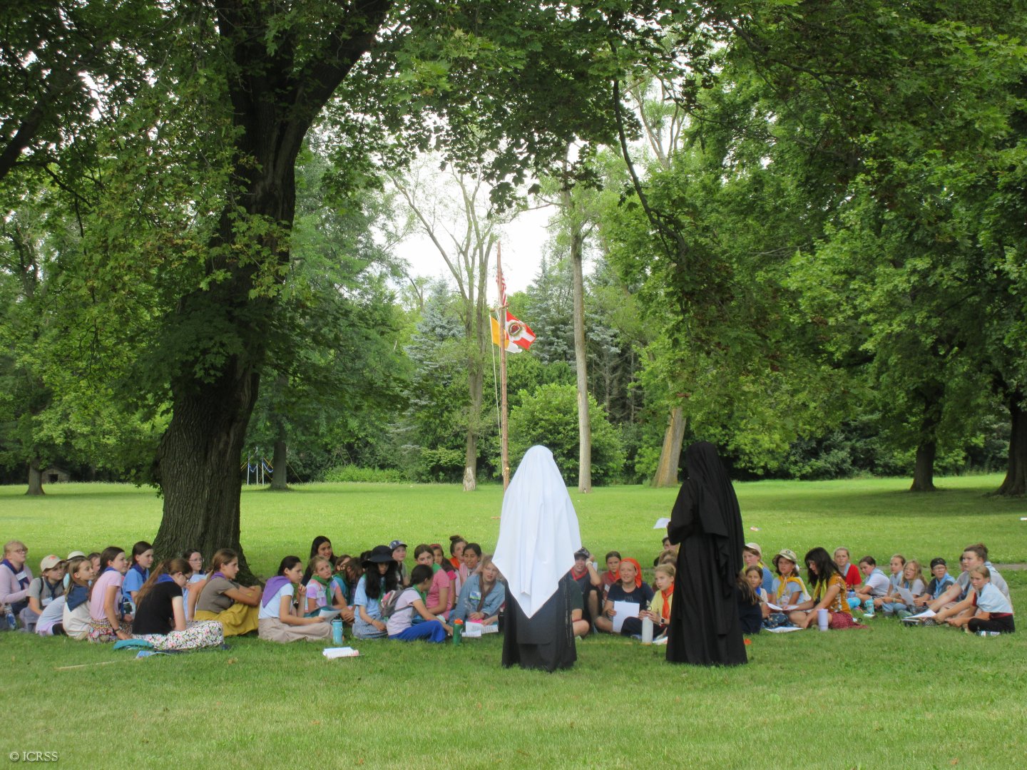 Podczas apelu — obóz św. Teresy dla dziewczynek w Burlington, stan Wisconsin na północy Stanów Zjednoczonych Ameryki