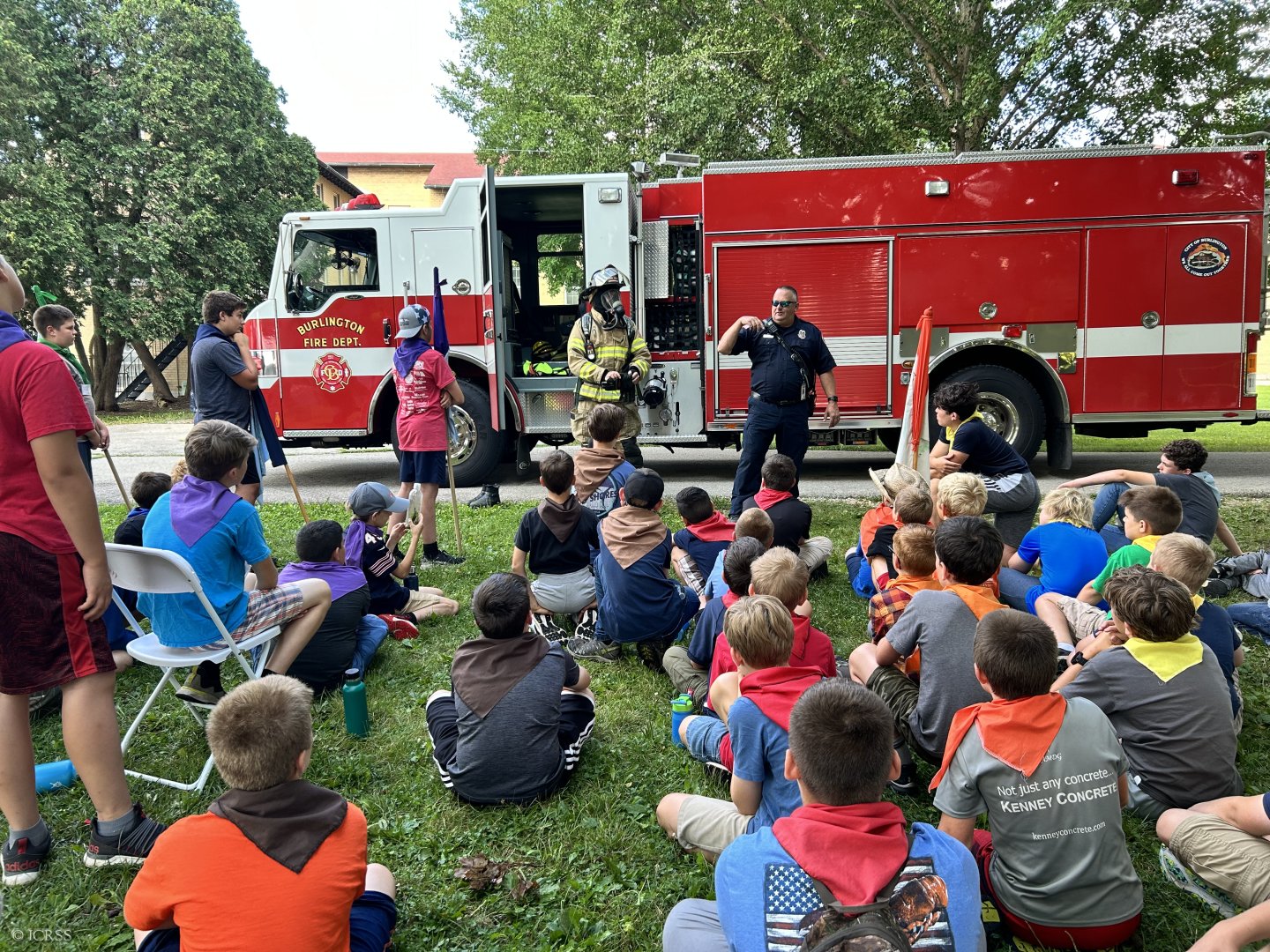 Spotkanie z policjantami i strażakami — obóz św. Michała dla chłopców w Burlington, stan Wisconsin na północy Stanów Zjednoczonych Ameryki