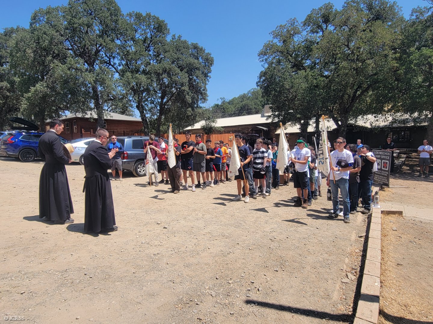 Modlitwa w czasie apelu — obóz św. Michała w Oakland w Kalifornii, USA
