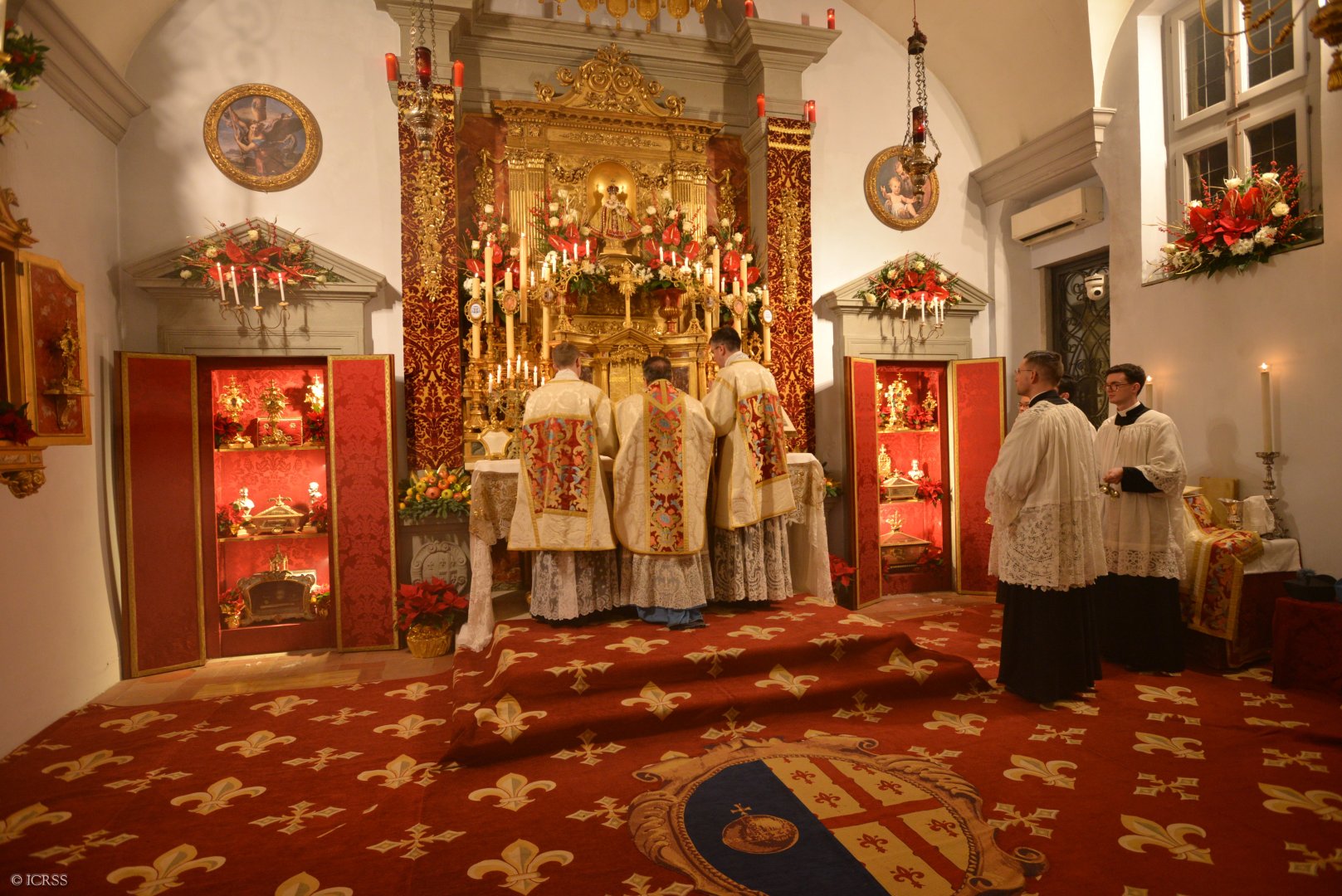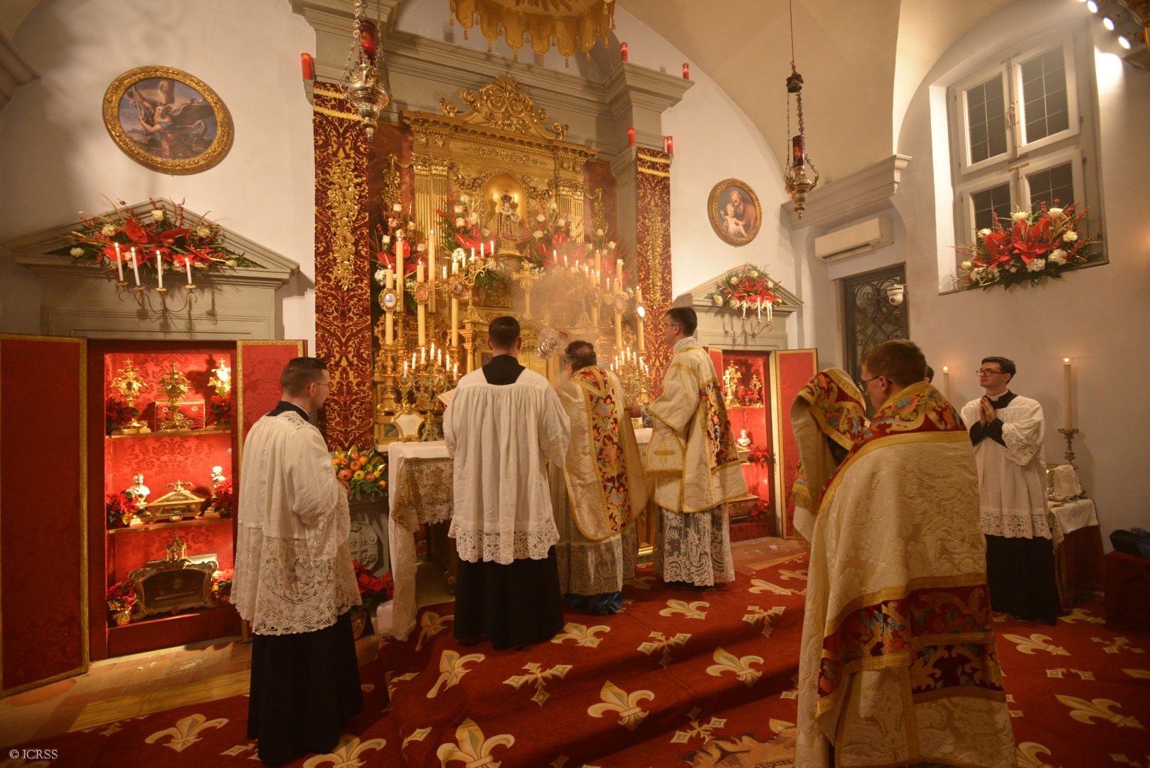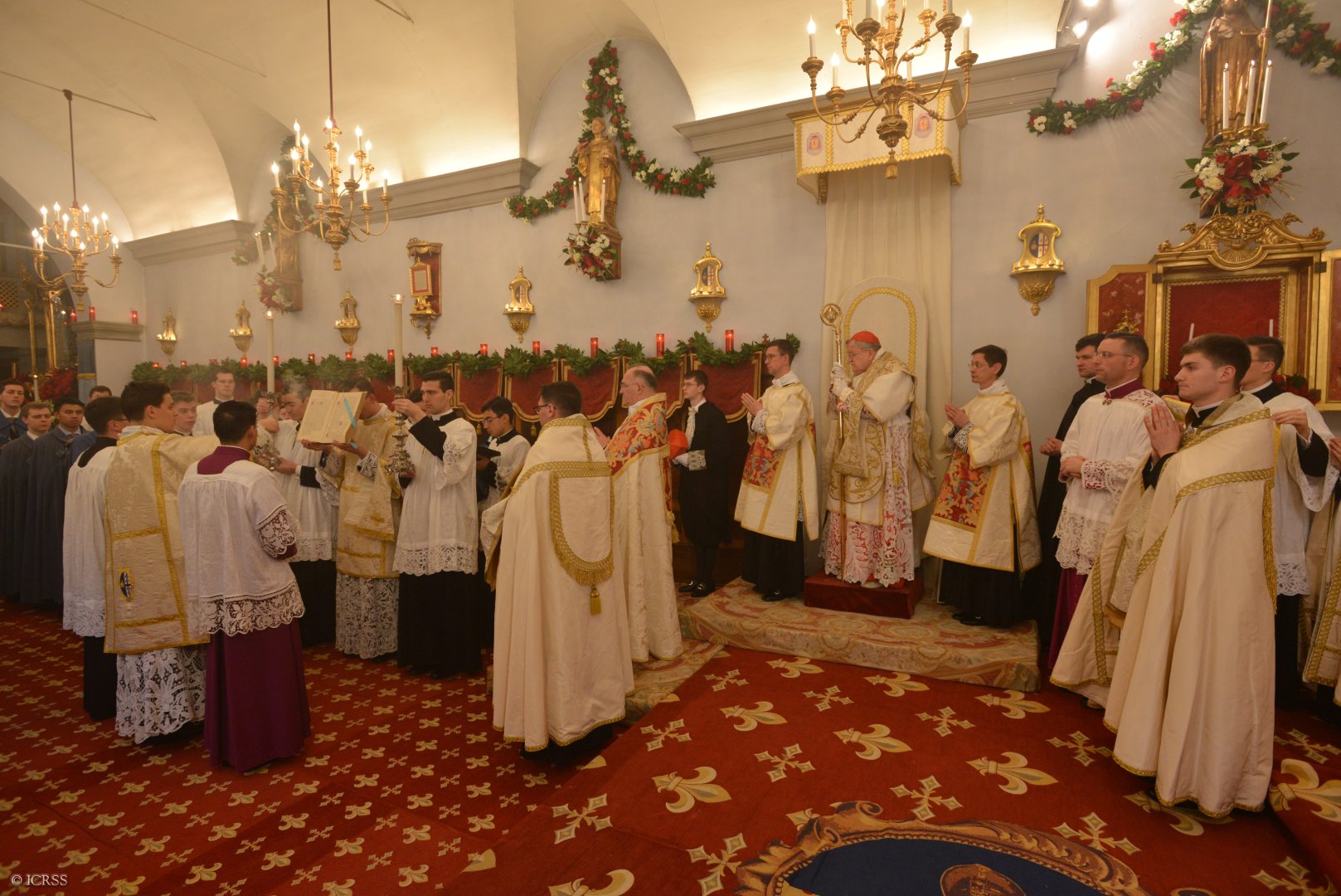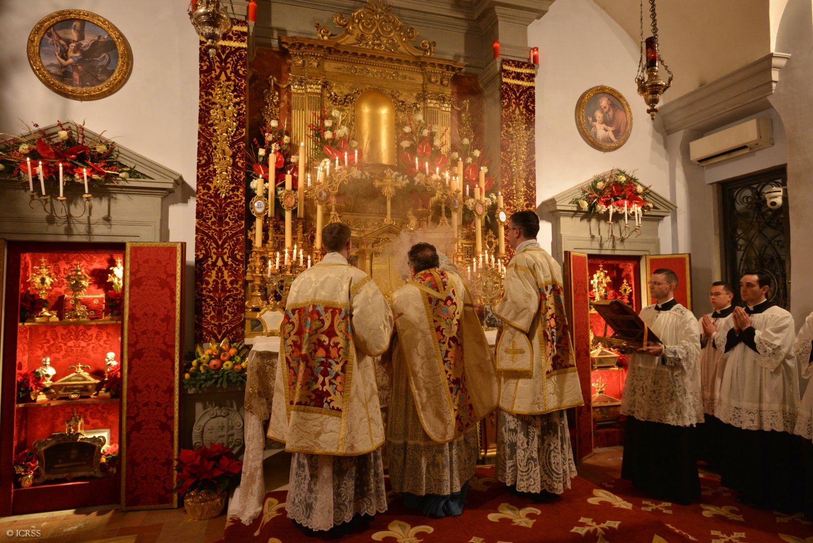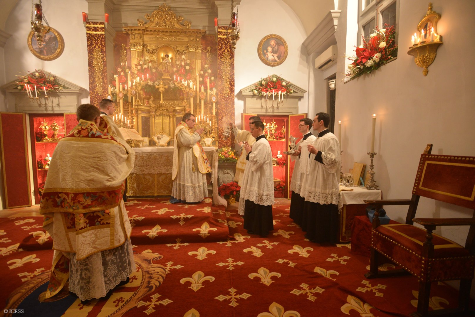 Trzecią Mszę Świętą (w dzień) Bożego Narodzenia uroczyście odprawił od tronu Jego Eminencja Ksiądz Rajmund Leon Kardynał Burke, który już od wielu lat spędza święta w Gricigliano.