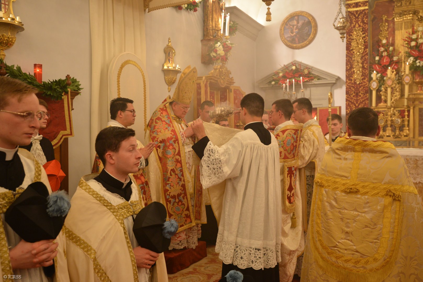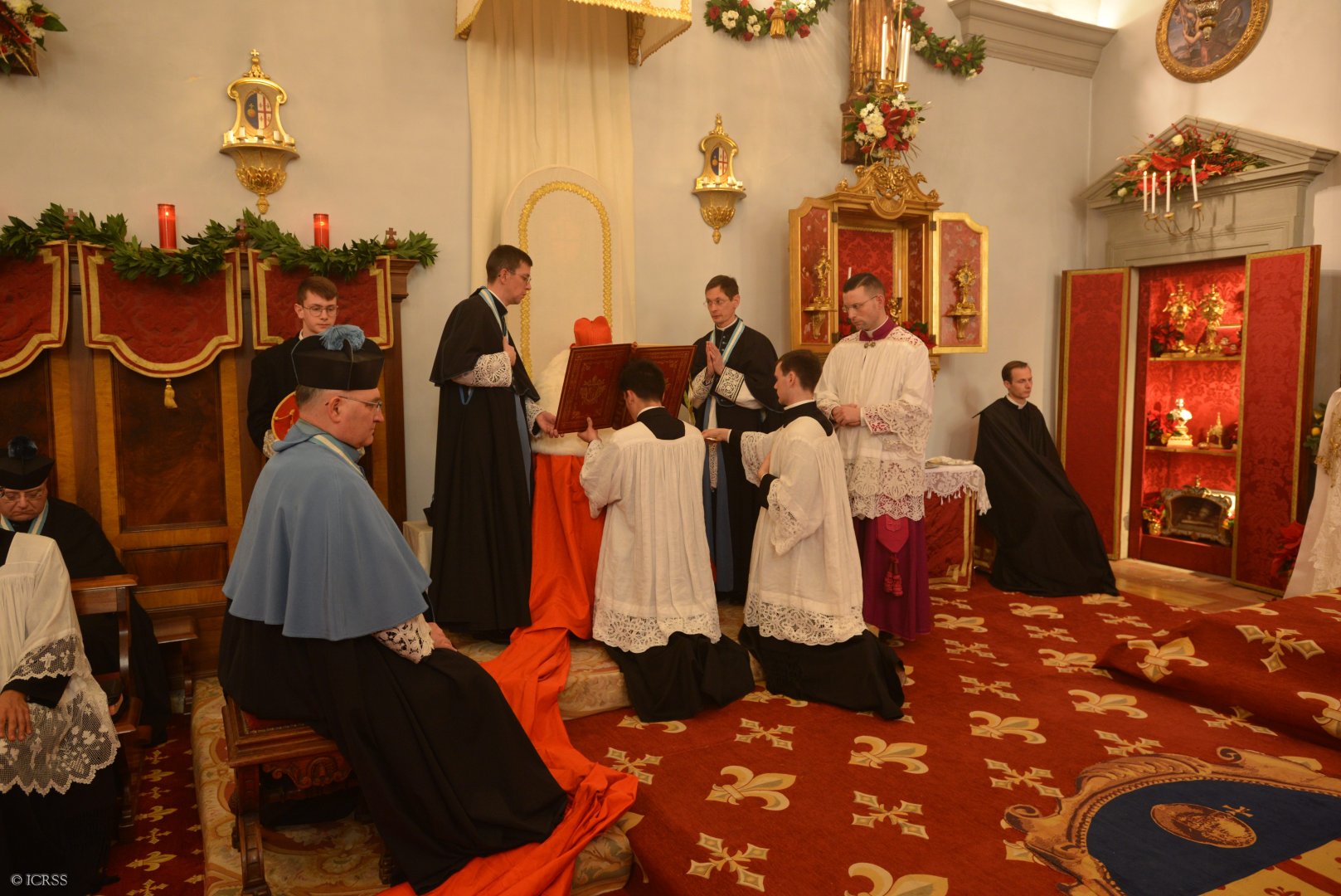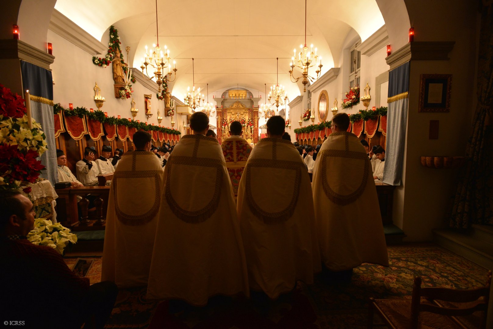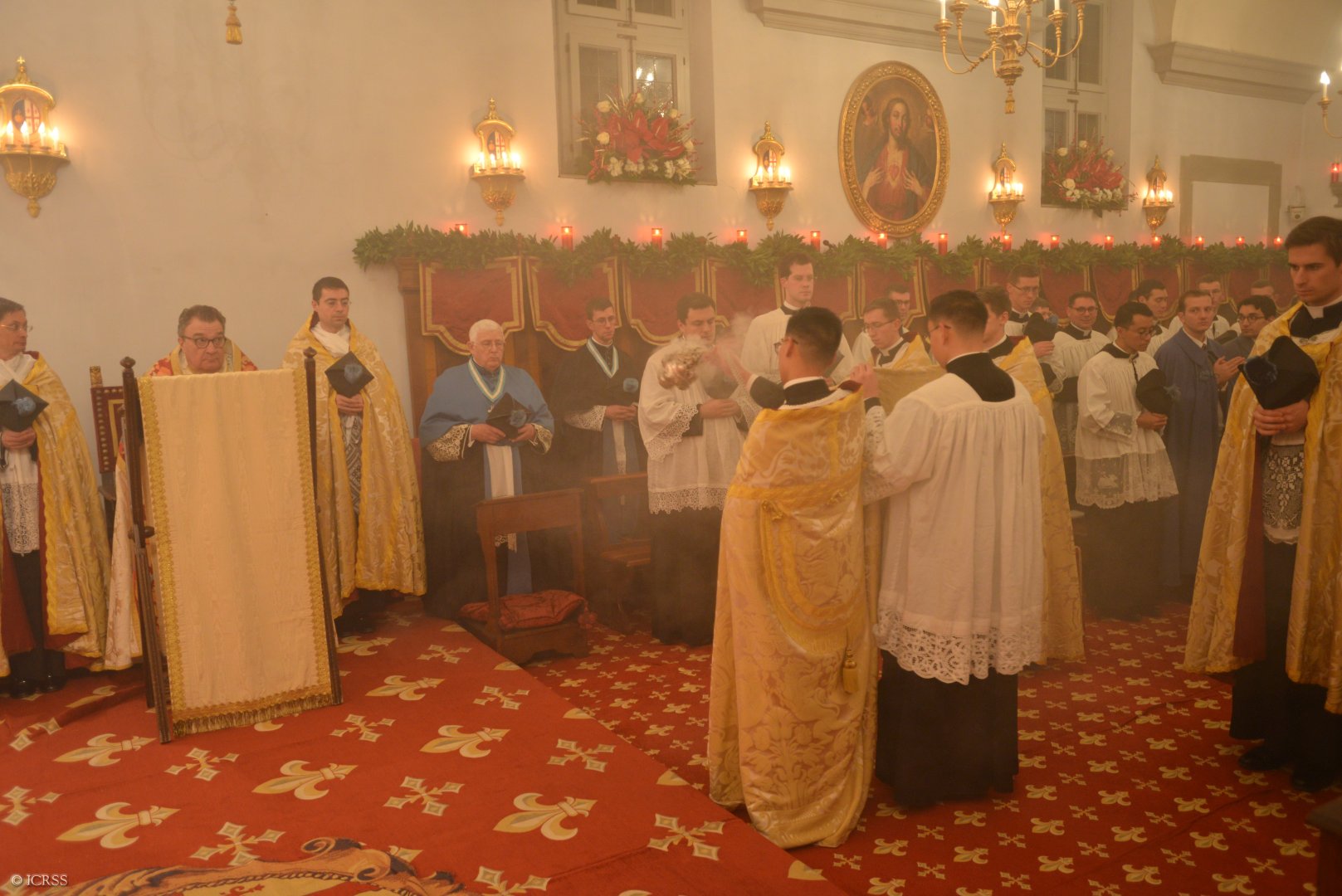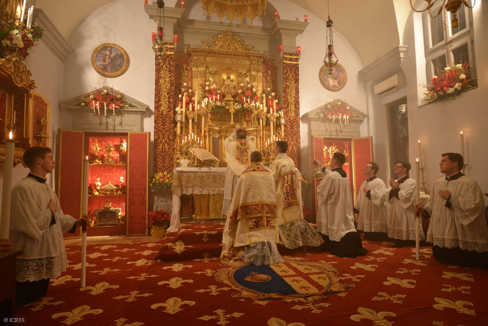 Trzecią Mszę Świętą (w dzień) Bożego Narodzenia uroczyście odprawił od tronu Jego Eminencja Ksiądz Rajmund Leon Kardynał Burke, który już od wielu lat spędza święta w Gricigliano.