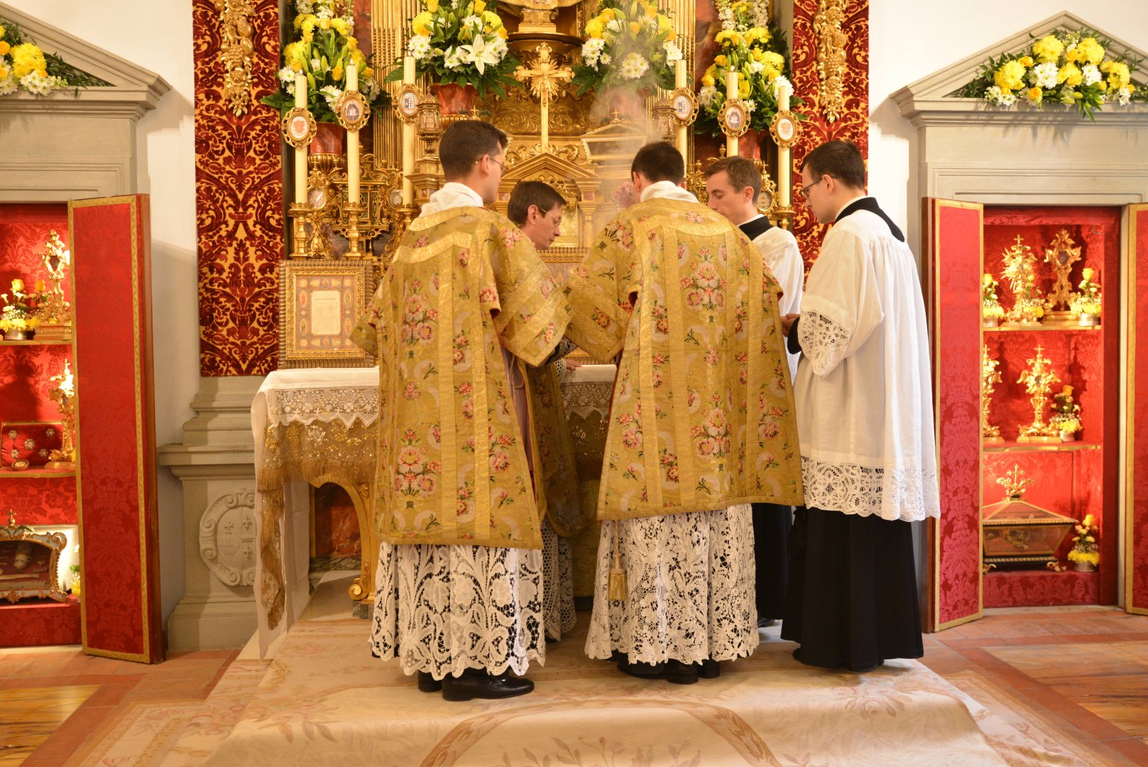 Oficjant wraz z asystentami oddają cześć ołtarzowi przed okadzeniem