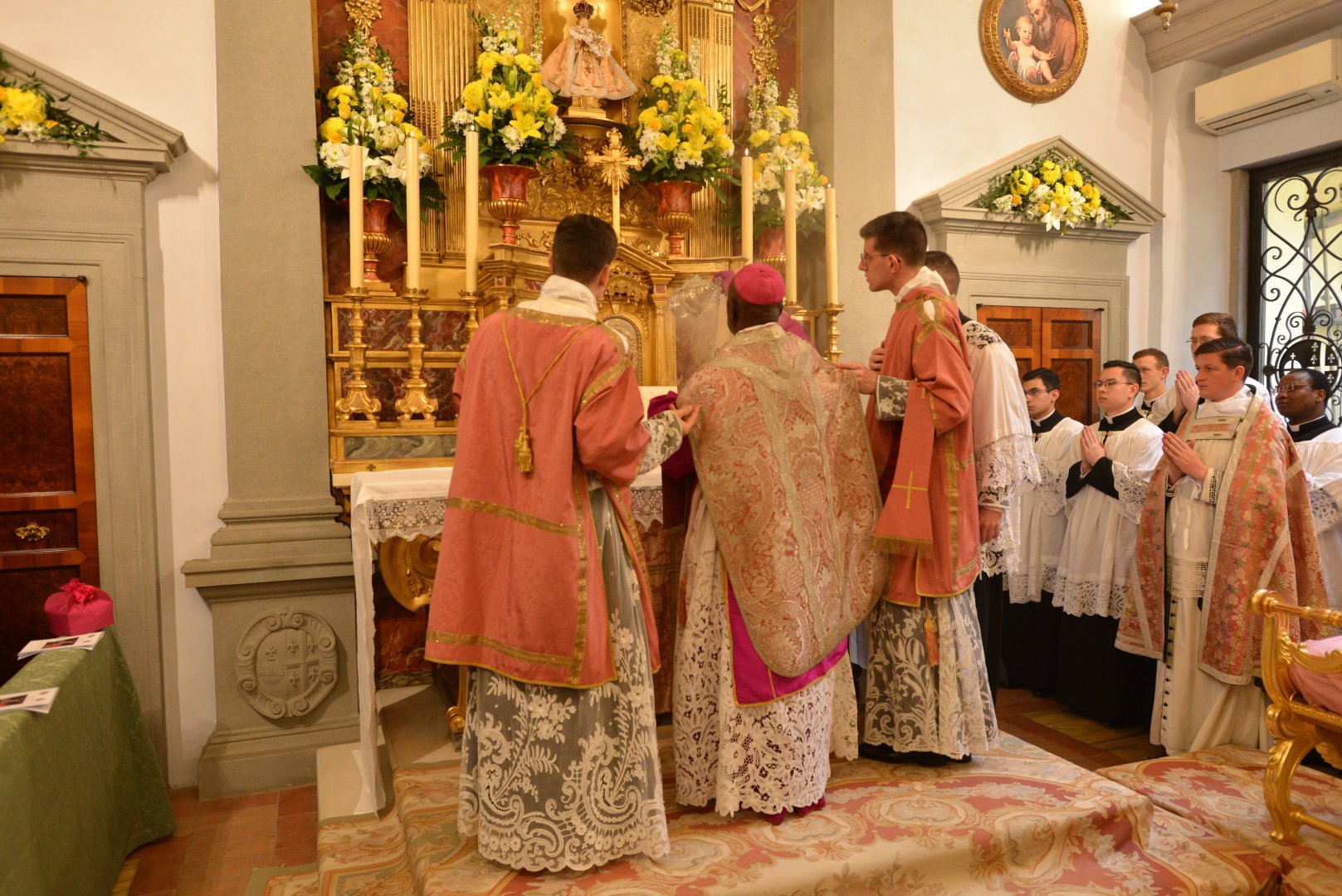 Mszę Świętą pontyfikalną od faldystorium odprawił Ksiądz Biskup Matthieu Madega, biskup diecezji Mouila.