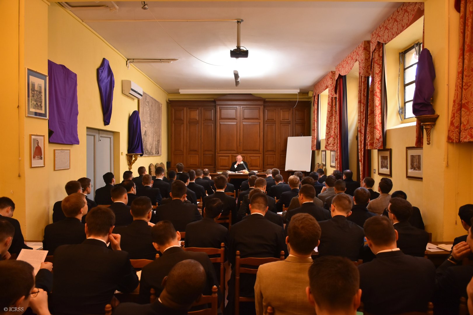 Ksiądz Kanonik Louis Poucin de Wouilt, seminaryjny mistrz ceremonii, wygłasza konferencję o celebracjach liturgicznych Wielkiego Tygodnia