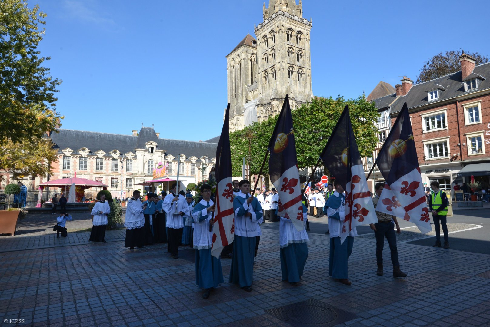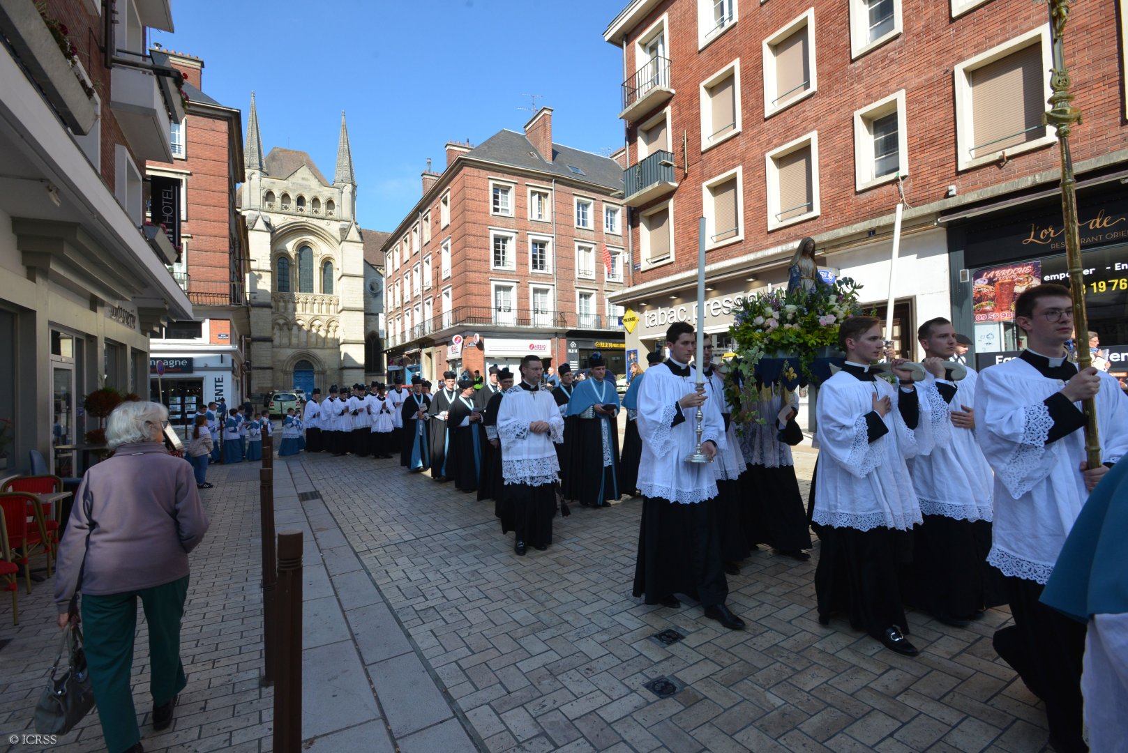 W ramach pielgrzymki Ksiądz Prałat Gilles Wach, Przełożony Generalny, odprawił uroczystą Mszę Świętą w katedrze w Lisieux i wygłosił kazanie. Po liturgii pielgrzymi wyruszyli w procesji od katedry, przez Lisieux, aż do krypty bazyliki św. Teresy od Dzieciątka Jezus, gdzie odbyła się adoracja Najświętszego Sakramentu.