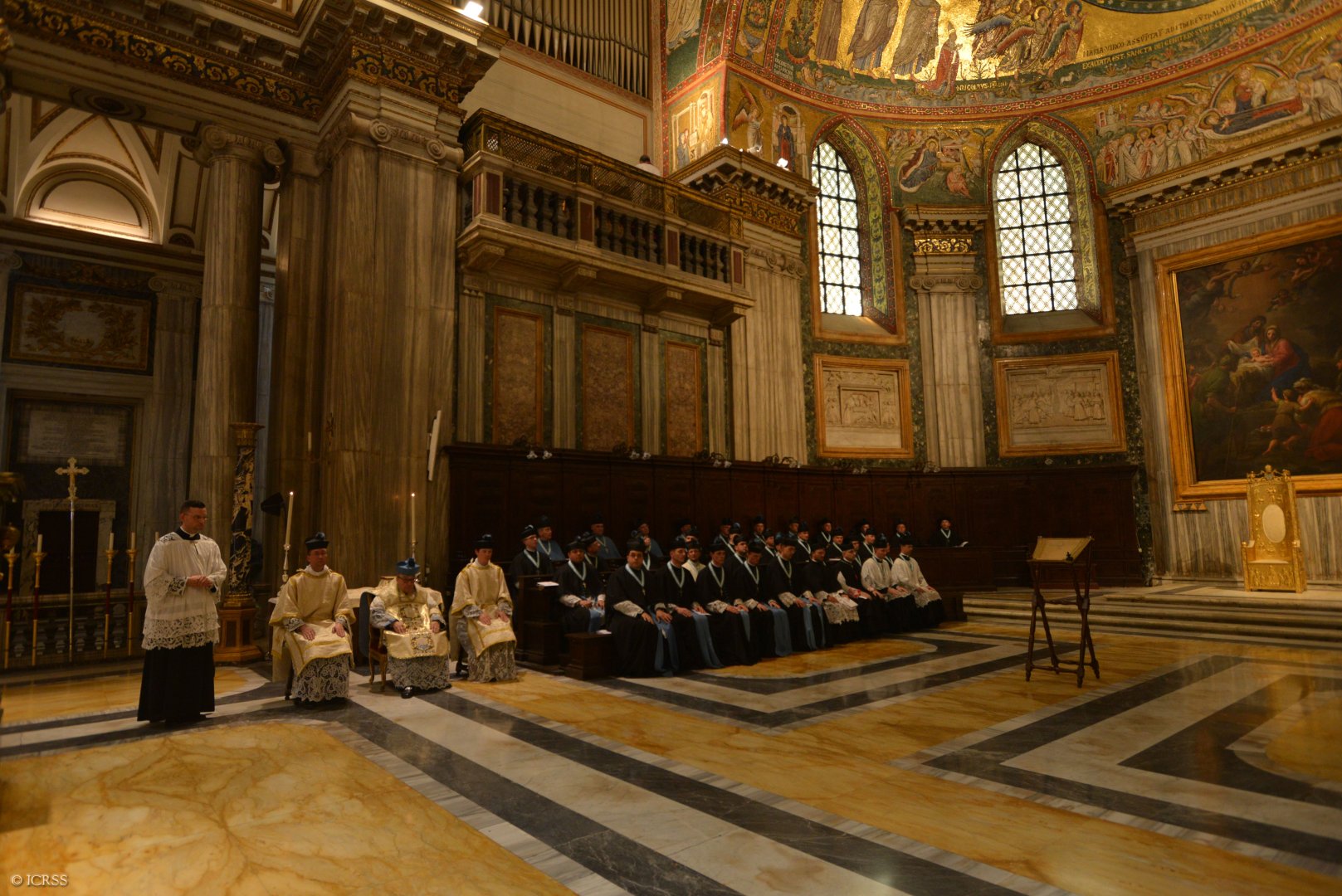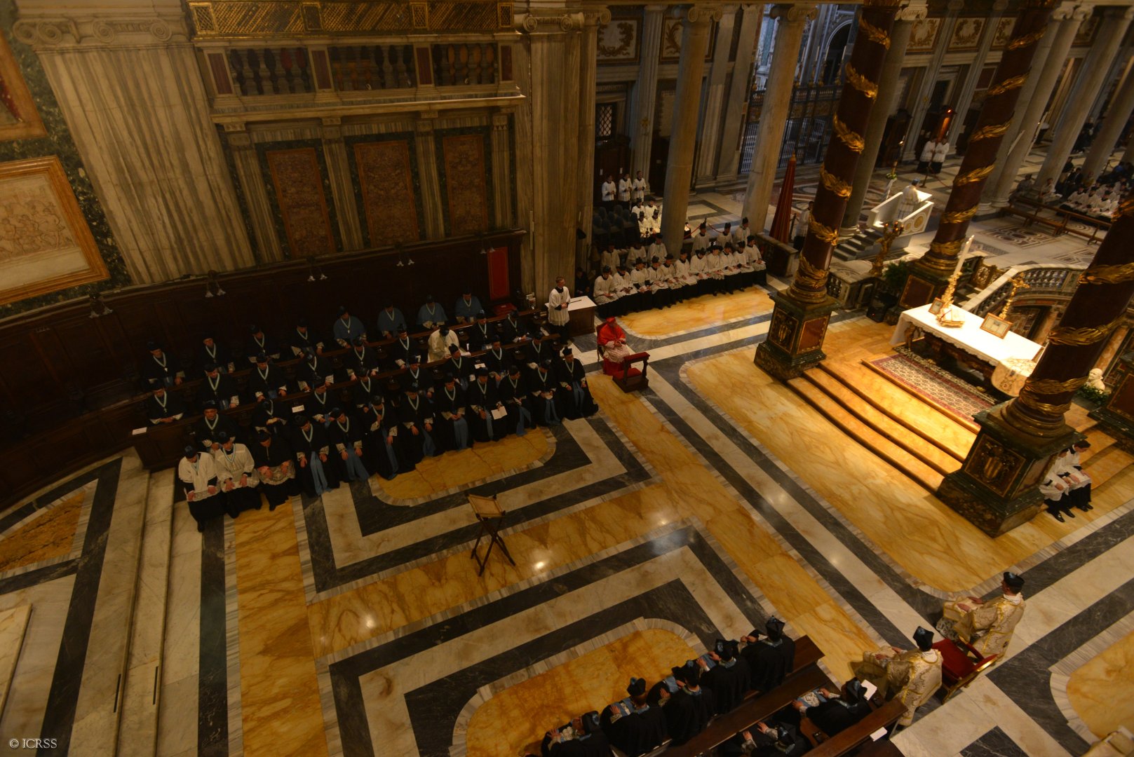 Księża Kanonicy w stallach wraz z JEm ks. kard. Simonim