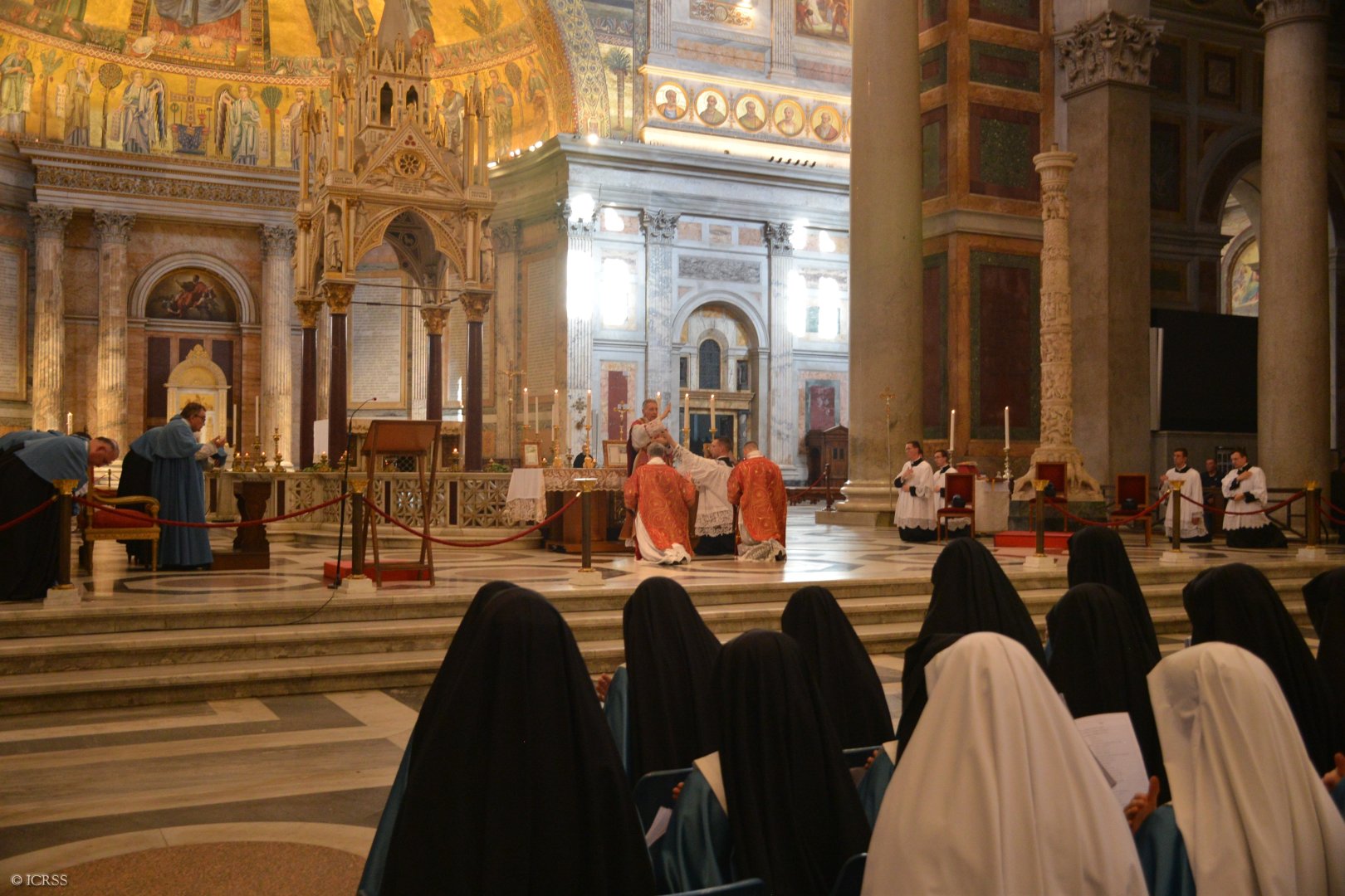 Uroczystą Mszę Świętą otwierającą pielgrzymkę Instytutu odprawił Ksiądz Prałat Gilles Wach, Założyciel i Przełożony Generalny Instytutu, w Bazylice Matki Bożej Większej. Na Mszy obecny był również Jego Eminencja Ksiądz Ernest Kardynał Simoni.