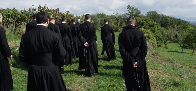 Popołudnie rozpoczyna się wspólnotową modlitwą różańcową, odmawianą zwyczajowo na zewnątrz, w której polecamy naszych przyjaciół i dobroczyńców, również tych którzy już od nas odeszli. W październiku, zgodnie z długą tradycją i życzeniem papieża Leona XIII, odmawiamy nabożeństwo różańcowe wobec wystawionego Najświętszego Sakramentu w naszej seminaryjnej kaplicy.
